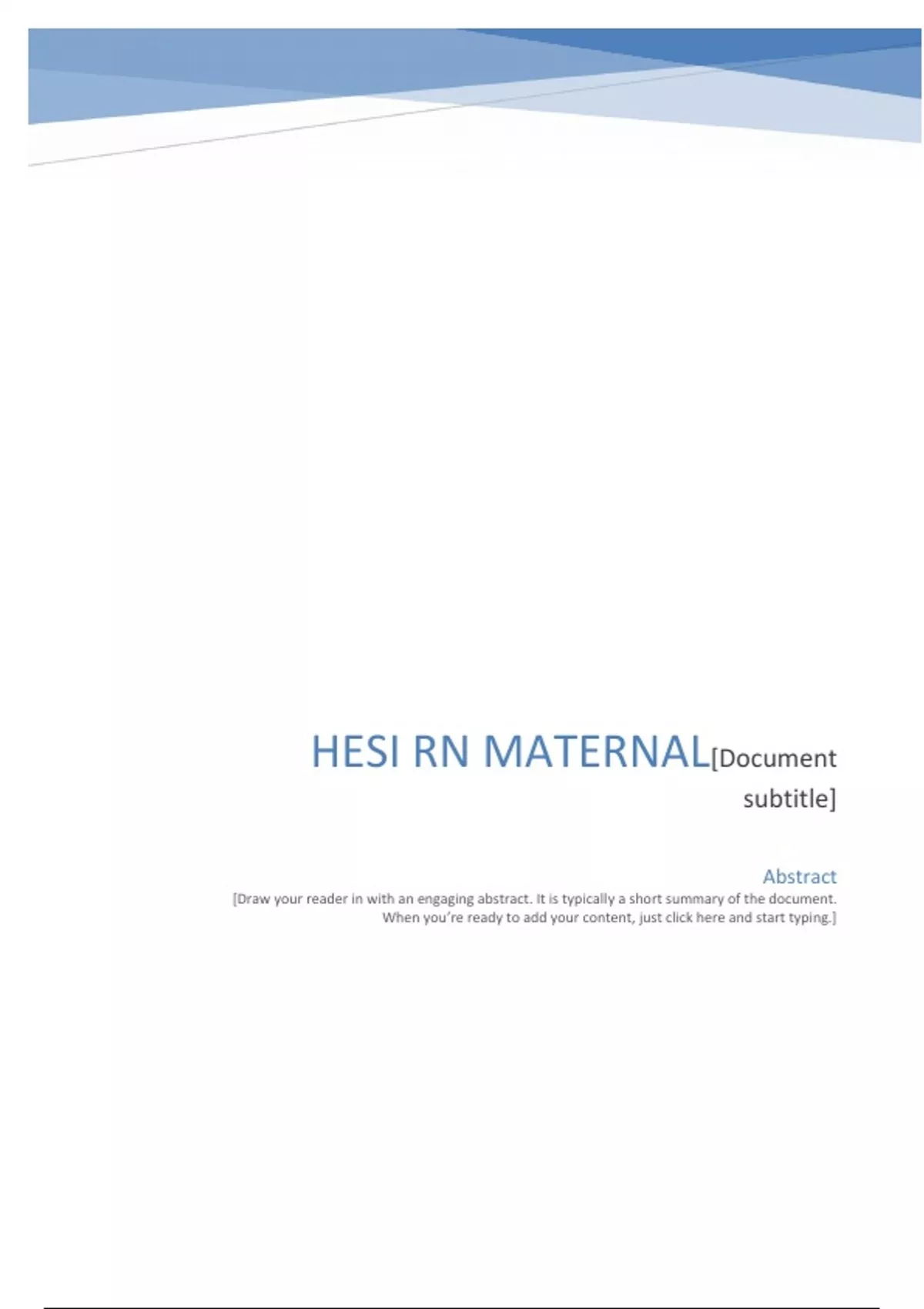 HESI RN MATERNAL[Document subtitle] Abstract [Draw your reader in with an engaging abstract. It is typically a short summary of the document. When you’re ready to add your content, just click here and start typing.] HESI RN MATERNAL NEW FILE TESTED 2022 55 Questions & Answers 1.The nurse is planning a class for pregnant women in the first trimester of pregnancy.Which information is most imported for the nurse to include in the class? B) If any vaginal bleeding occurs, notify the healthcare provider immediately 2. When assessing a pregnant woman AT 39-weeks gestation who is admitted to labor anddelivery which finding is most important to report to the health care provider? D) 101.2 oral temperature 3. A client who suspects she is pregnant tells the nurse she has a peptic ulcer that is beingtreated with misoprostol (Cytotec), a synthetic prostaglandin C drug, how should the nurse respond? A) “You may be at risk for having a spontaneous miscarriage” 4. Following the vaginal delivery of a large-for-gestation-age (LGA) infant a woman is admitted to the intensive care unit due to postpartum hemorrhaging. The client’s medical record lists the client’s religion as Jehovah’s Witness. What action should the nurse take? C) Clarify the clients wishes about receiving blood products 5. After delivery of a normal infant, the mother tells the nurses that she would like to useoral contraceptive. Which finding in the client’s health history is a contraindication of the use of contraceptives? D) Smoked cigarettes prior to becoming pregnant 6. When planning care for a laboring client, the nurse identifies the need to withhold solidsfood while the client is in labored. What is the most important reasons for this nursing intervention? C) An increased risk of aspiration can occur if general anesthesia is needed 7. The parents of a male newborns have signed an informed consent for intervention should the nurse implement upon completion of the circumcision? A) Place petroleum gauze dressings on the site 8. The nurse is caring for a postpartum client who is complaining of severe pain and a feeling of pressure in her perineum. Her fundus is firm, and she has a moderate lochia flow.On inspection the nurse finds that a perineal hematoma is beginning to form. Which assessment findings show the nurse obtain first? C) Heart rate and blood pressure 9. At 6 weeks gestation the rubella titer of a client medication indicates she is nonimmune. When is the best time to administer a rubella vaccine to this client? D) Early postpartum within 72 hours of delivery 10. The nurses assessing a 38-week gestation newborn infant immediately following a vaginal birth. Which assessment finding best indication that the infant is transitioning well toextrauterine life? B) Cries vigorously when stimulated 11. A woman in her third trimester of pregnancy has been in active labor for the past 8hours and cervix dialed 3cm. The nurse’s assessment findings and electronic fetal monitoring (EFM) are consistent with hypotonic dystocia, and the healthcare providerprescribes an oxytocin drip. Which data is most important for the nurse to monitor? C) Intensity, interval, and length of contractions 12. The nurse is caring for a newborn who is 18inches long, weighs 4 pounds, 14 ounces, has a head circumference of 13 inches, and a chest circumference of 10inches. Based on these physical findings, assessment for which condition has the highest priority? A) Hyperthermia 13. .Assessment findings of a 3-hour old newborn include: axillary temperature of 97.7 F,heart rate of 140 beats/min with a soft murmur, and irregular respiratory rate at 42 breaths/min. Based on these findings, what action should the nurse implement? d. place the infant under the radiant warmer 14.Which type of anesthesia, used with a client in labor, produces a loss of sensation onlyto the vagina and perineum? a. pudendal block 15.A new mother asks the nurse about an area of swelling on her baby’s head near the posterior fontanel that lies across the suture line. How should the nurse respond? a. that is called a caput succedaneum. it will absorb and cause no problems* 16.A 5-day old infant with a serum bilirubin of 19 mg/dl is being discharged from the hospital. Which instruction should the nurse include in the discharge teaching plan? b. monitor skin and eyes for yellow tinge 17.The current vital signs for a primipara who delivered vaginally during the previous shift are: temperature 100.4 F, heart rate 58 beats/min, respiratory rate 16 breaths/min, andblood pressure 130/74. What action should the nurse implement? c. document the vital signs in the record 18.A client who suspects she is pregnant tells the nurse she has a peptic ulcer that is being treated with misoprostol (Cytotec), a synthetic prostaglandin E drug. How should the nurse respond? d. you may be at higher risk for having a spontaneous miscarriage * 19.A pregnant woman who is at 10-weeks’ gestation and is 35 years of age tells the nurse that she is concerned about the possibility of having a baby with Down Syndrome. Which information should the nurse provide this client? d. Chorionic villus sampling at 12 weeks gestation is the earliest screening test used toidentify Down Syndrome * 20.A client who is anovulatory and has hyperprolactinemia is being treated for infertility with metformin (Glucophage), menotropins (Repronex, menopur) and HCG. Which side effect should the nurse tell the client to report immediately? c. nausea and vomiting 21. The HCP prescribes 10 units/L of oxytocin (Pitocin) via IV drip to augment a client’s labor because she is experiencing a prolonged active phase. Which finding would causethe nurse to immediately discontinue the oxytocin? d. contraction duration of 100 seconds * 22. The nurse receives a newborn within the first minutes after a vaginal delivery and intervenes to establish adequate respirations. What priority should the nurse address to ensure the newborn’s survival? 