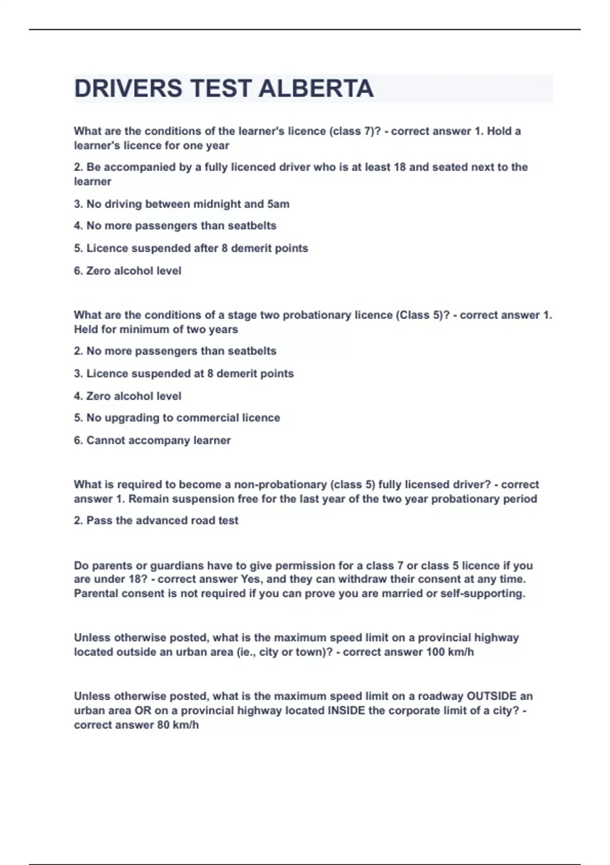DRIVERS TEST ALBERTA|UPDATED&VERIFIED|100% SOLVED|GUARANTEED SUCCESS