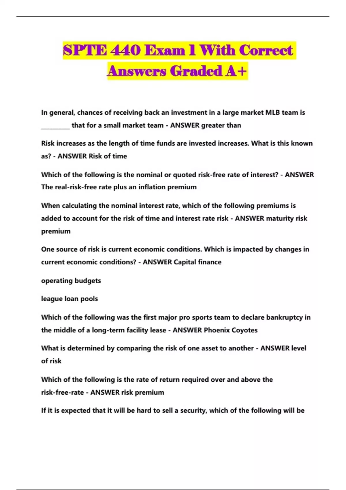 SPTE 440 Exam 1 With Correct Answers Graded A+...