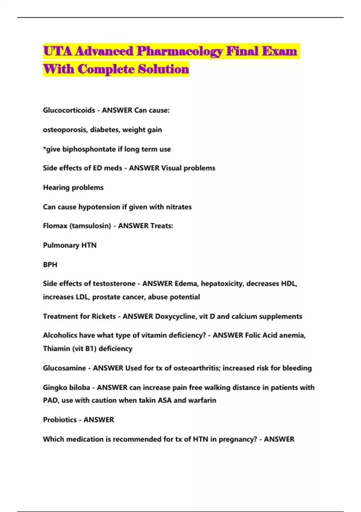 UTA Advanced Pharmacology Final Exam With Complete Solution...