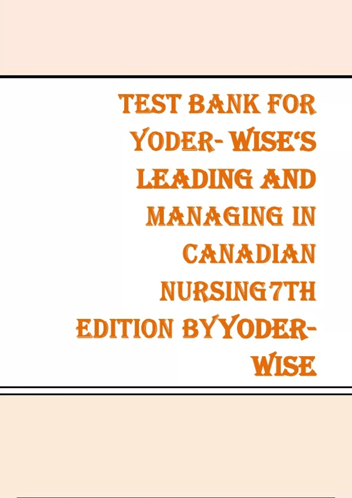 Test Bank For Leading and Managing in Canadian Nursing 7th Edition, Patricia S. Yoder-Wise, Janice Waddell, Nancy Walton||ISBN NO-||ISBN NO-||All Chapters||Complete Guide A+
