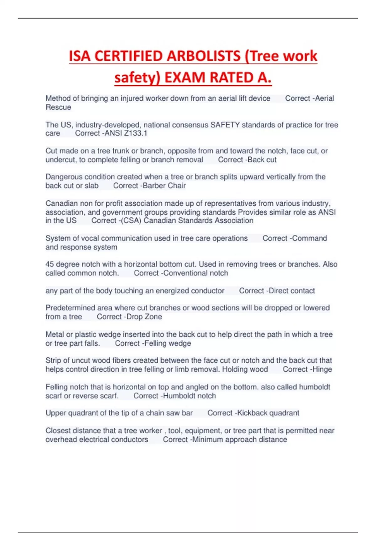 ISA CERTIFIED ARBOLISTS (Tree work safety) EXAM RATED A