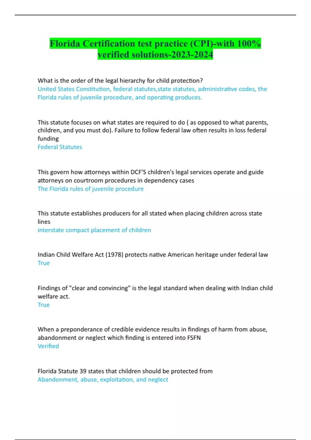 Florida Certification test practice (CPI)-with 100% verified solutions-