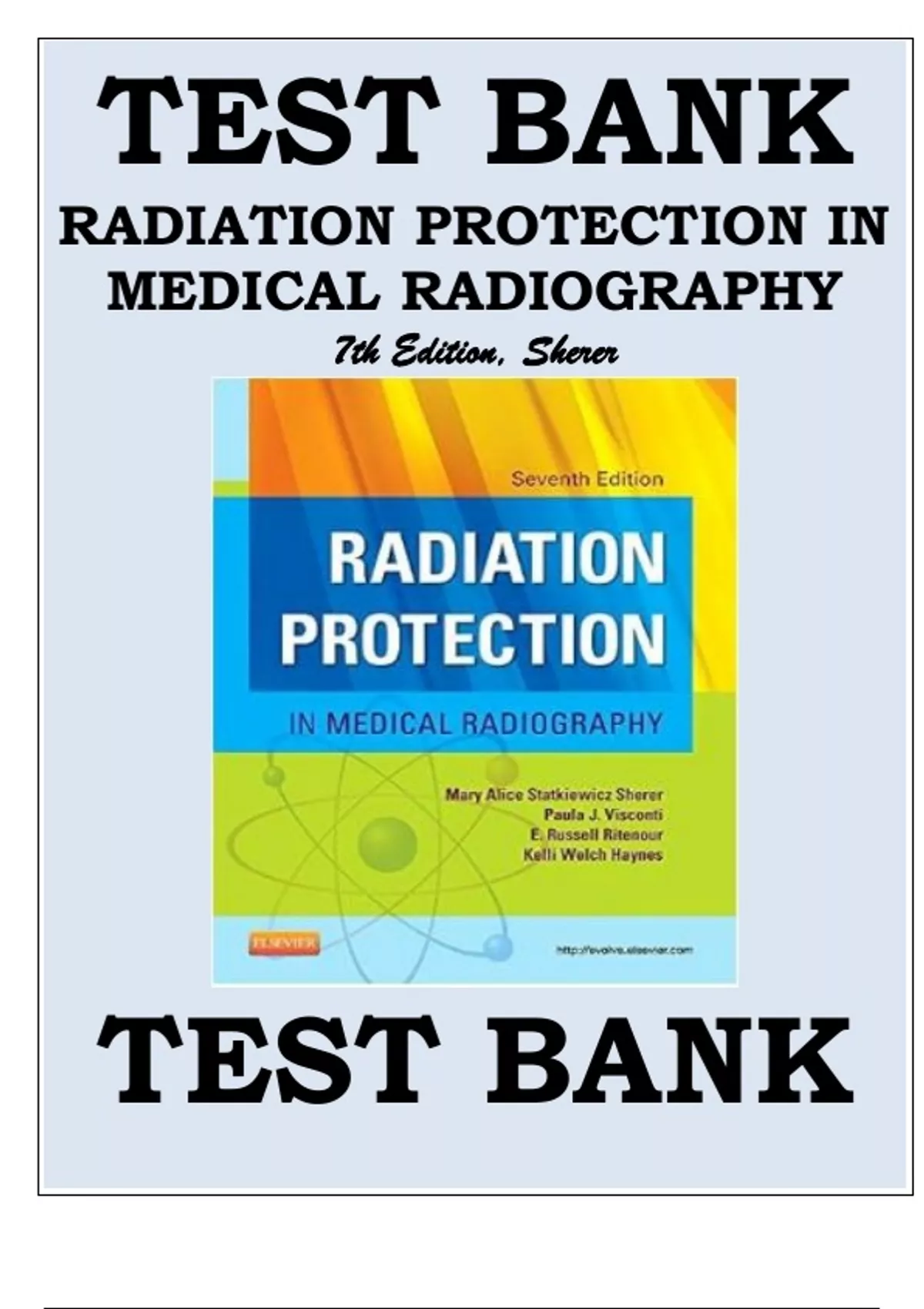 Test Bank For Radiation Protection in Medical Radiography, 7th Edition, Sherer Test Bank For Radiation Protection in Medical Radiography, 7th Edition, Sherer Contents: Chapter 1. Introduction to Radiation Protection Chapter 2. Radiation: Types, Sources, and Doses Received Chapter 3. Interaction of X-Radiation with Matter Chapter 4. Radiation Quantities and Units Chapter 5. Radiation Monitoring Chapter 6. Overview of Cell Biology Chapter 7. Molecular and Cellular Radiation Biology Chapter 8. Early Tissue Reactions and Their Effects on Organ Systems Chapter 9. Stochastic Effects and Late Tissue Reactions of Radiation in Organ Systems Chapter 10. Dose Limits for Exposure to Ionizing Radiation Chapter 11. Equipment Design for Radiation Protection Chapter 12. Management of Patient Radiation Dose During Diagnostic X-Ray Procedures Chapter 13. Management of Imaging Personnel Radiation Dose During Diagnostic X-Ray Procedures Chapter 14. Radioisotopes and Radiation Protection