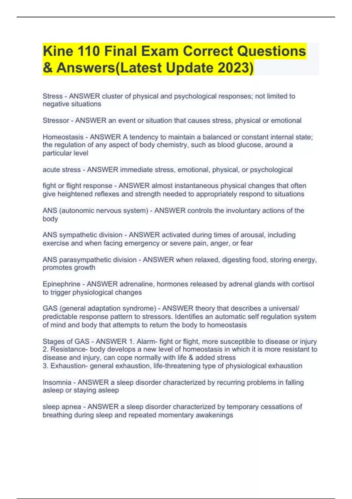 Kine 110 Final Exam Correct Questions & Answers(Latest Update 2023)