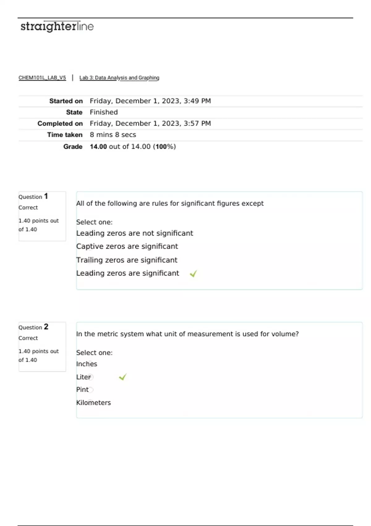 CHEM 101L Lab 3: Data Analysis and Graphing FALL 2023 (Straighterline)