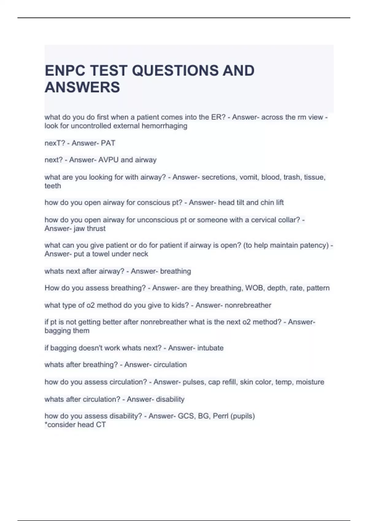 ENPC TEST QUESTIONS AND