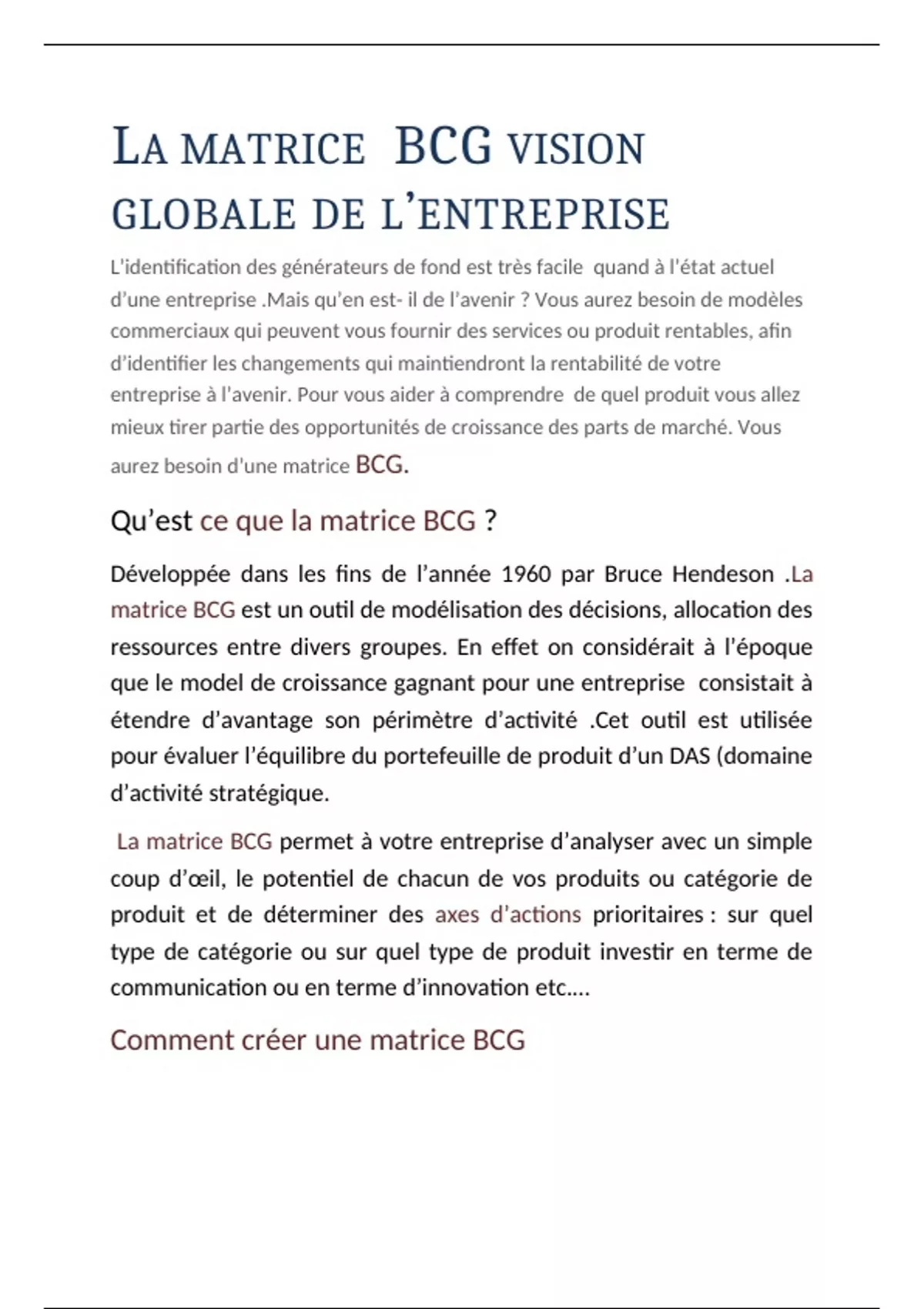 , aurez besoin d’une matrice BCG