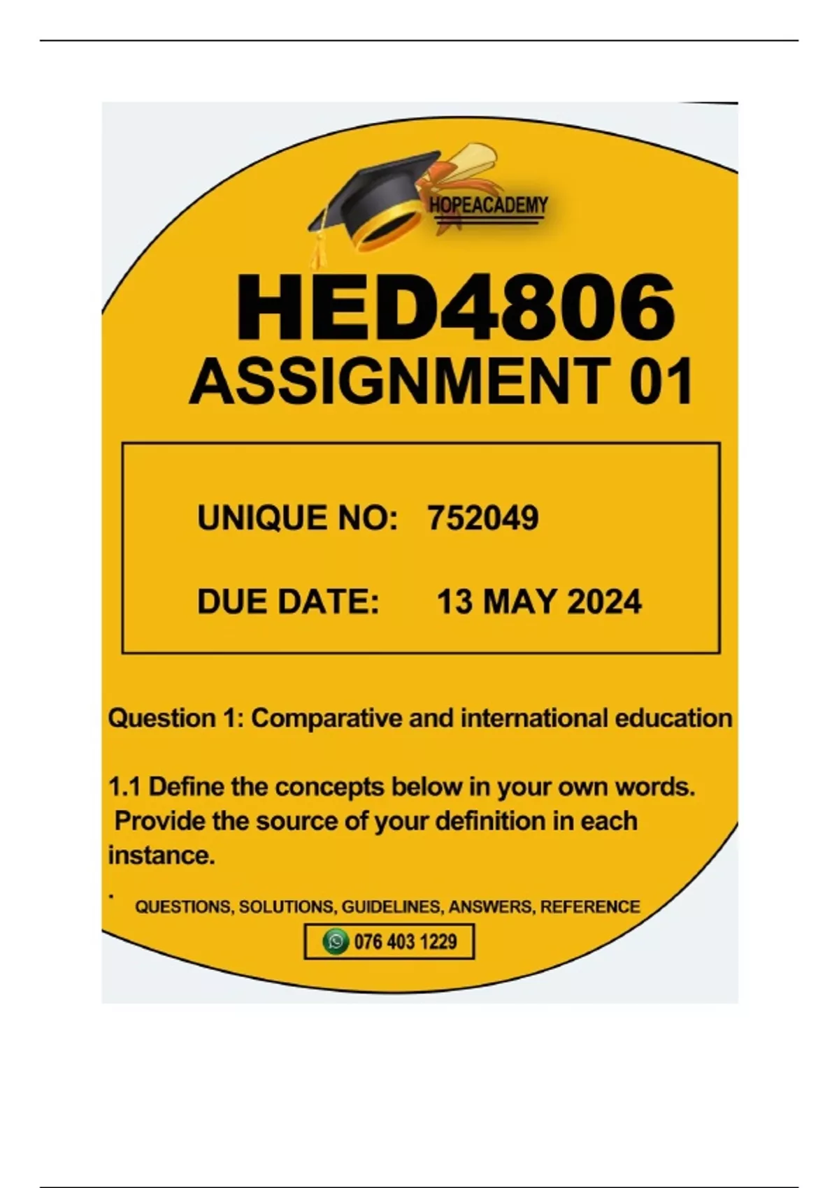 , HED4806 Assignment 01 Due date: 13 May 2024 Unique number: 752049