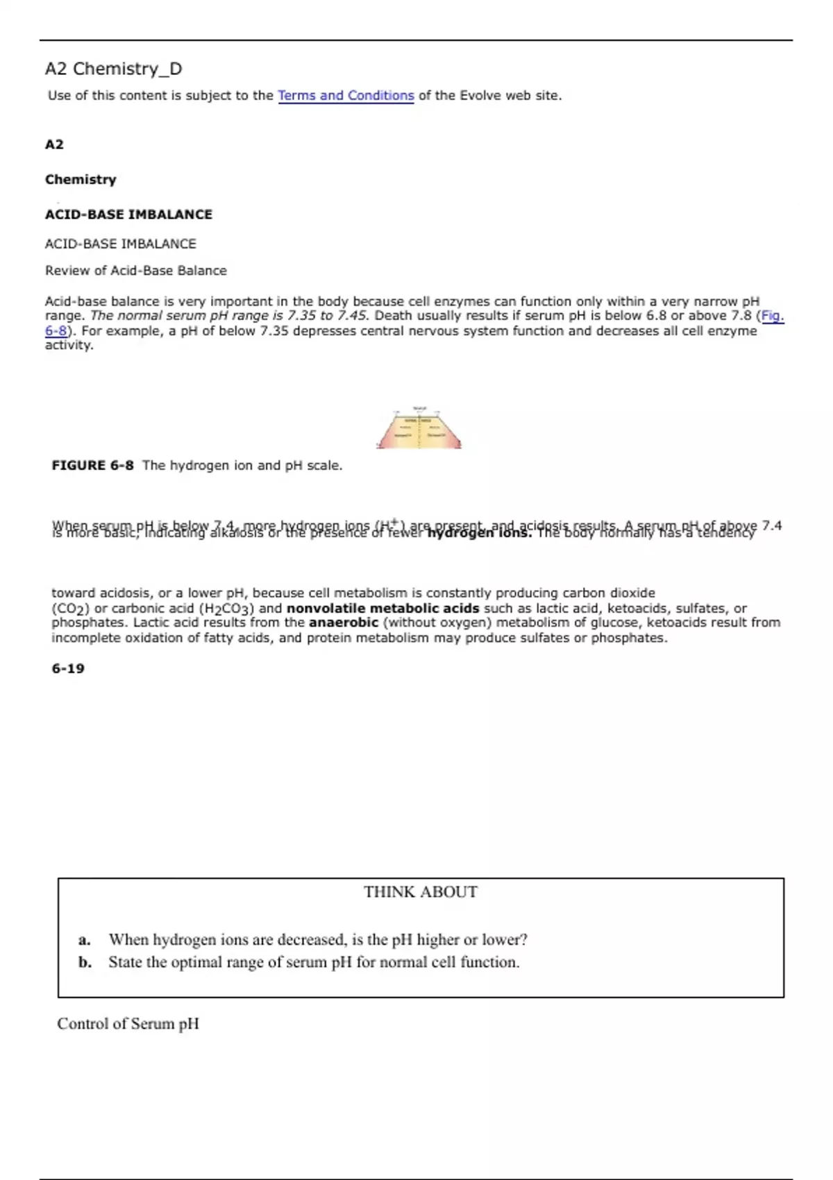 6-8). For example, a pH of below 7.35 depresses central nervous system function and decreases all cell enzyme
