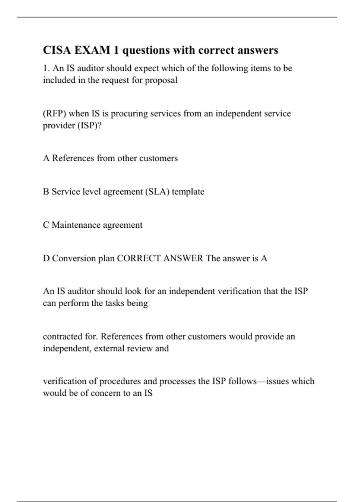 cisa exam 1 questions with correct answers