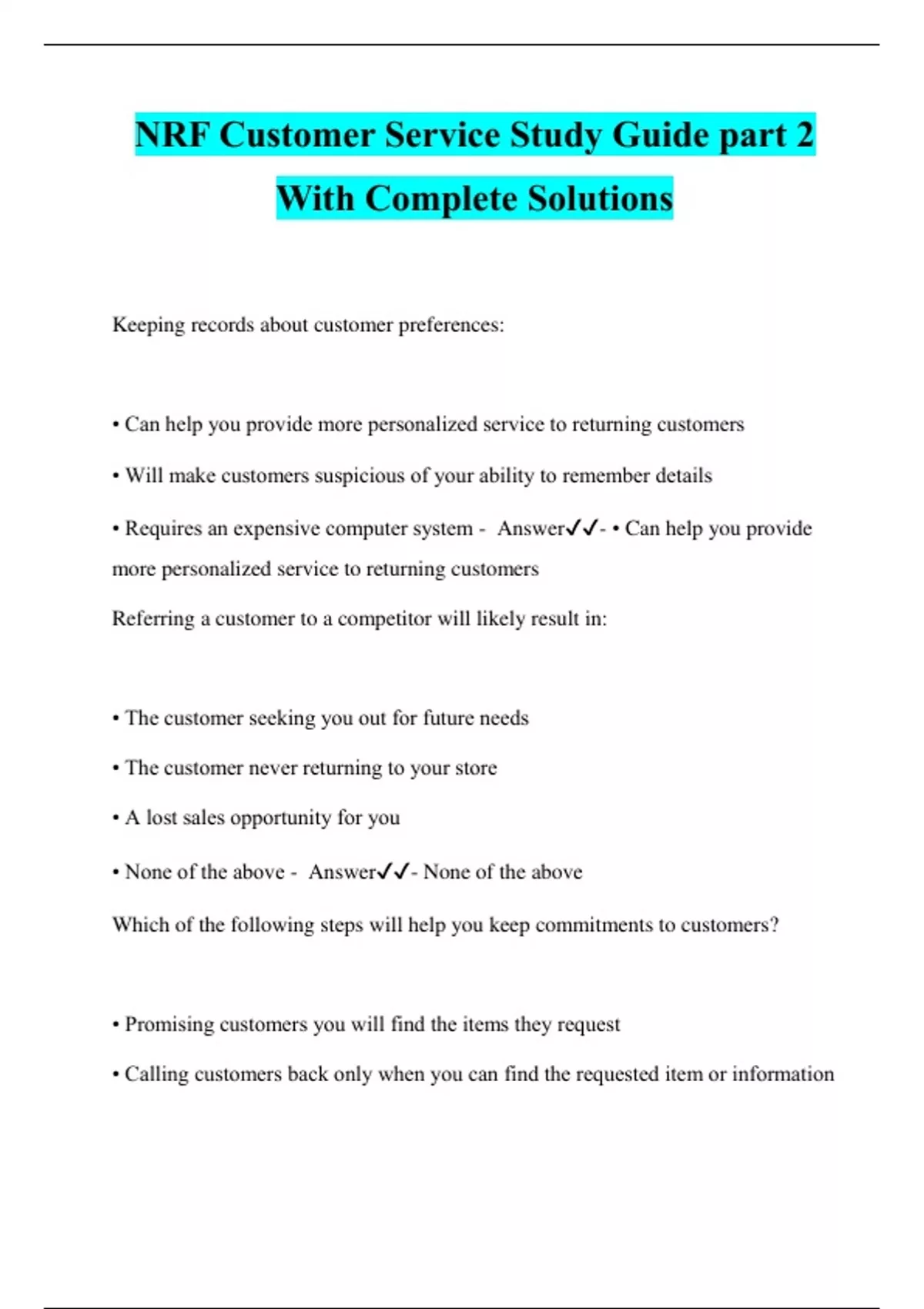 NRF Customer Service Study Guide part 2 With Complete Solutions