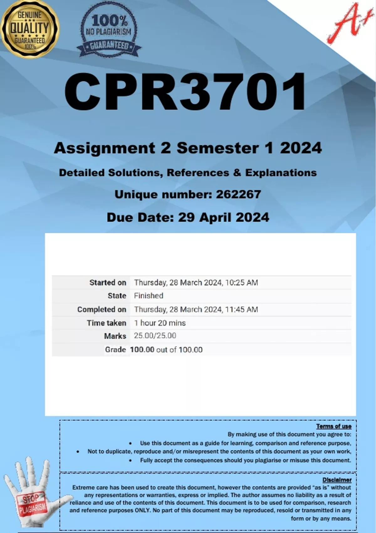 • Not to duplicate, reproduce and/or misrepresent the contents of this document as your own work,