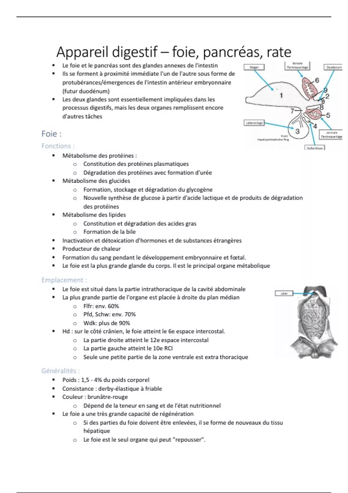 Appareil digestif – foie, pancréas, rate