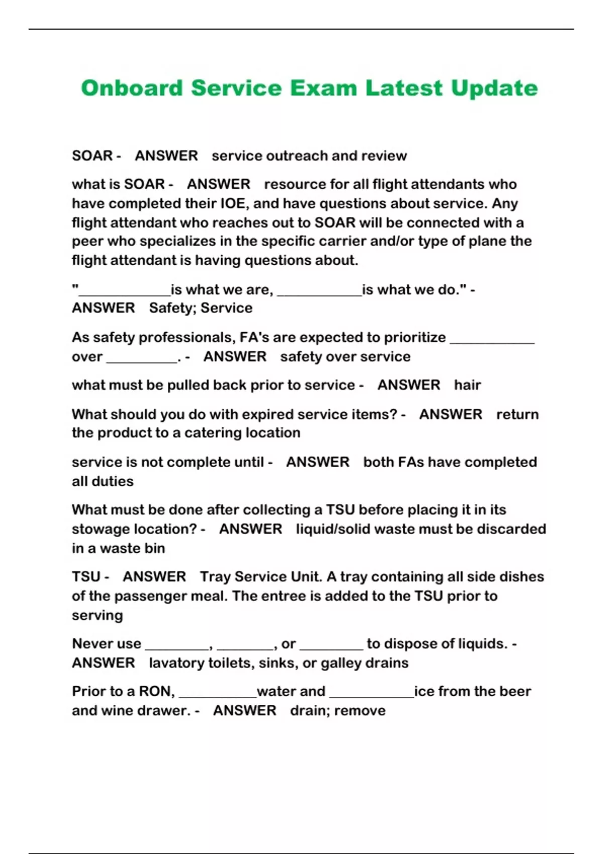 Onboard Service Exam Latest Update ...