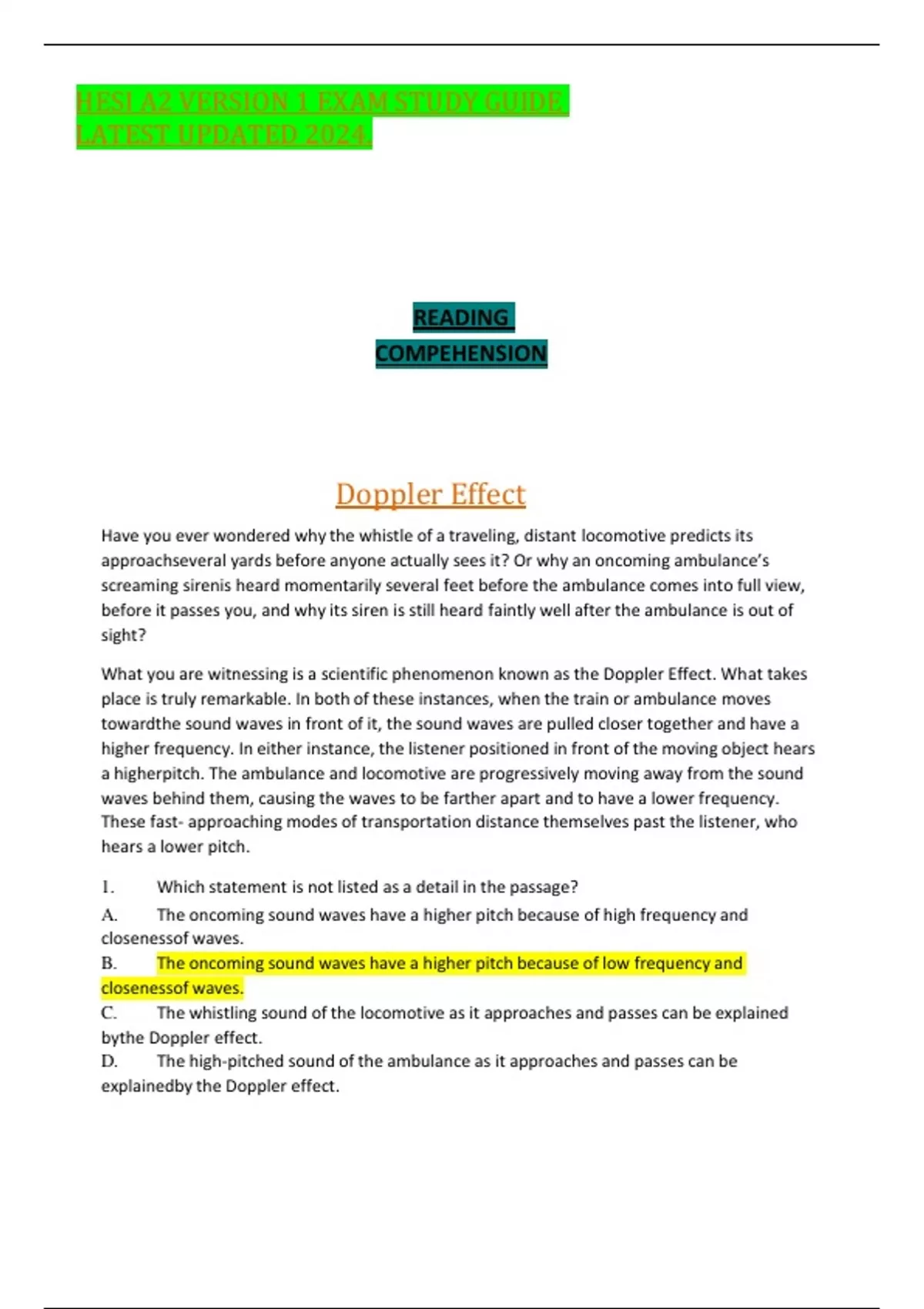 HESI A2 VERSION 1 EXAM STUDY GUIDE LATEST UPDATED 2024.