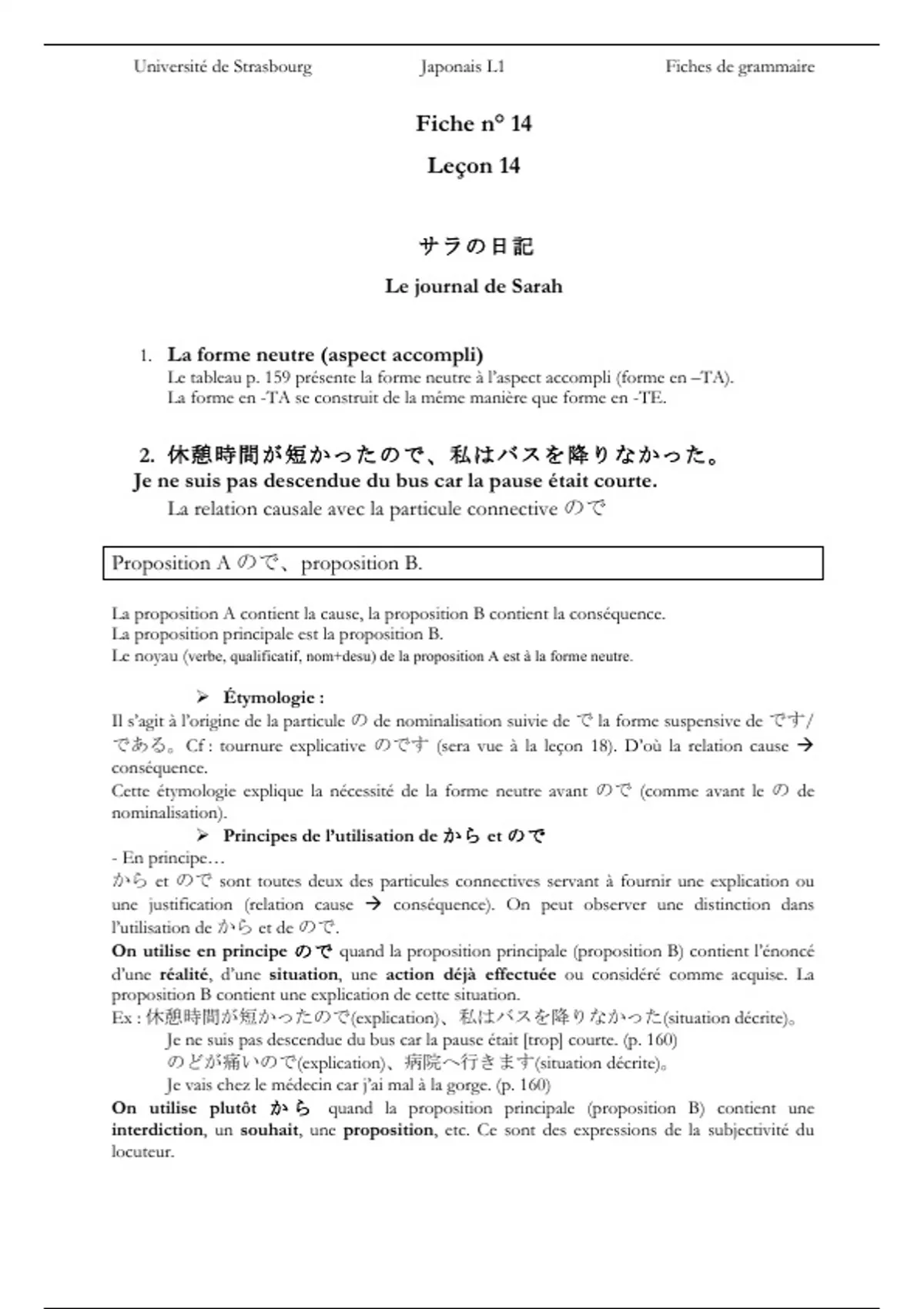 Université de Strasbourg Japonais L1 Fiches de grammaire
