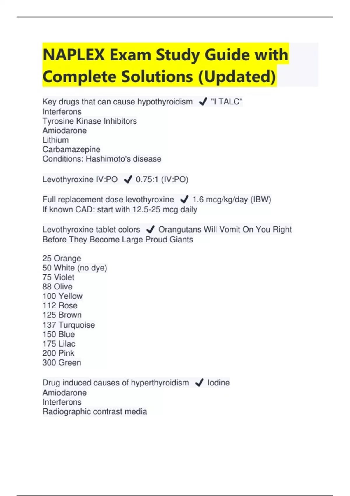 NAPLEX Exam Study Guide with Complete Solutions (Updated) | Latest 2024/2025 NAPLEX Exam Study Guide with Complete Solutions (Updated) | Latest 2024/2025