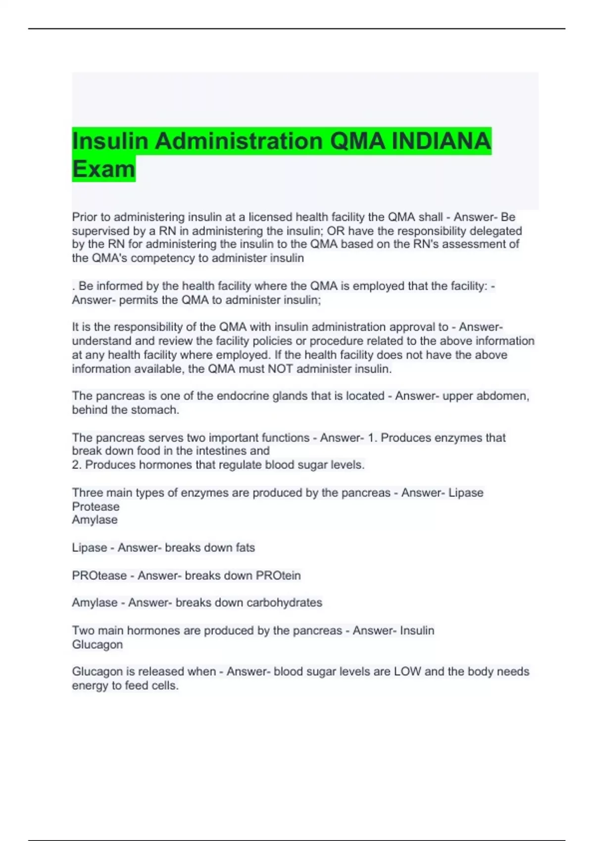 QMA insulin Exam Bundle