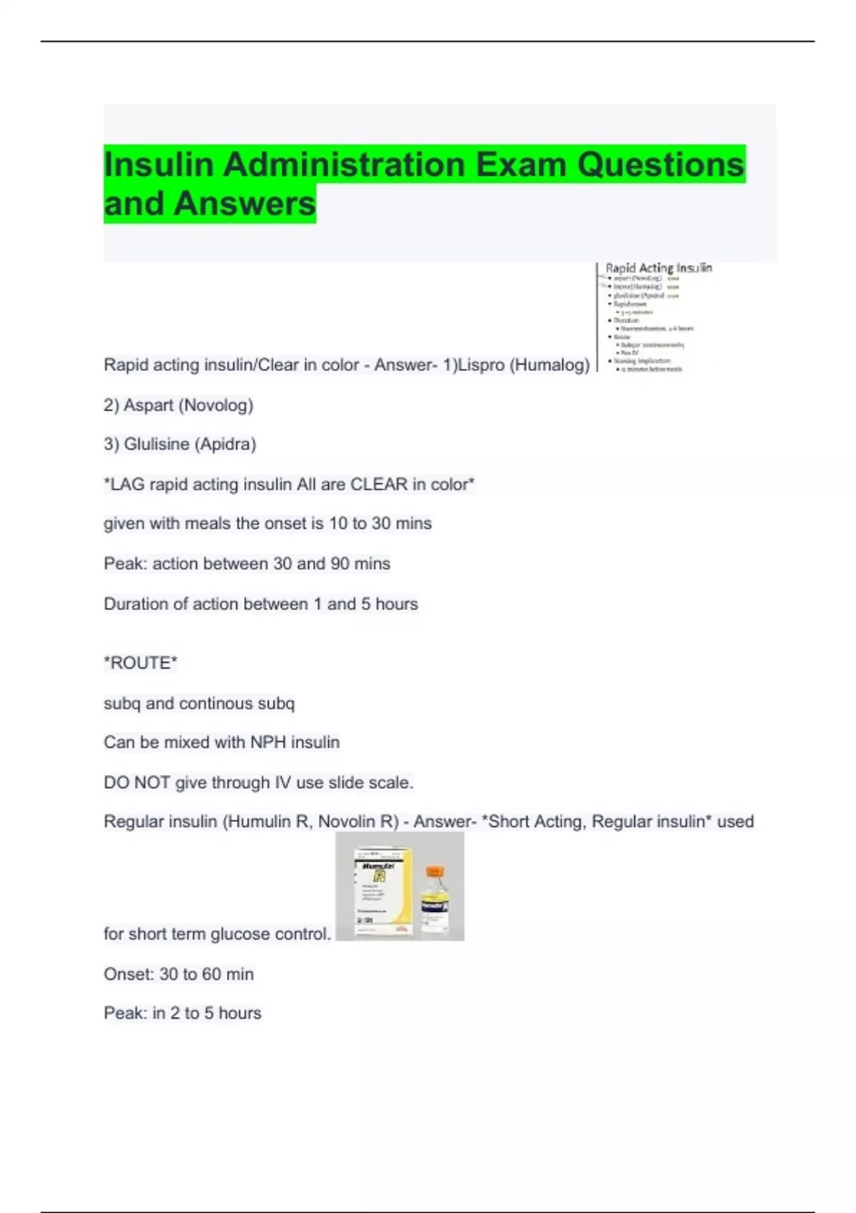 Insulin Administration Exam Questions and Answers