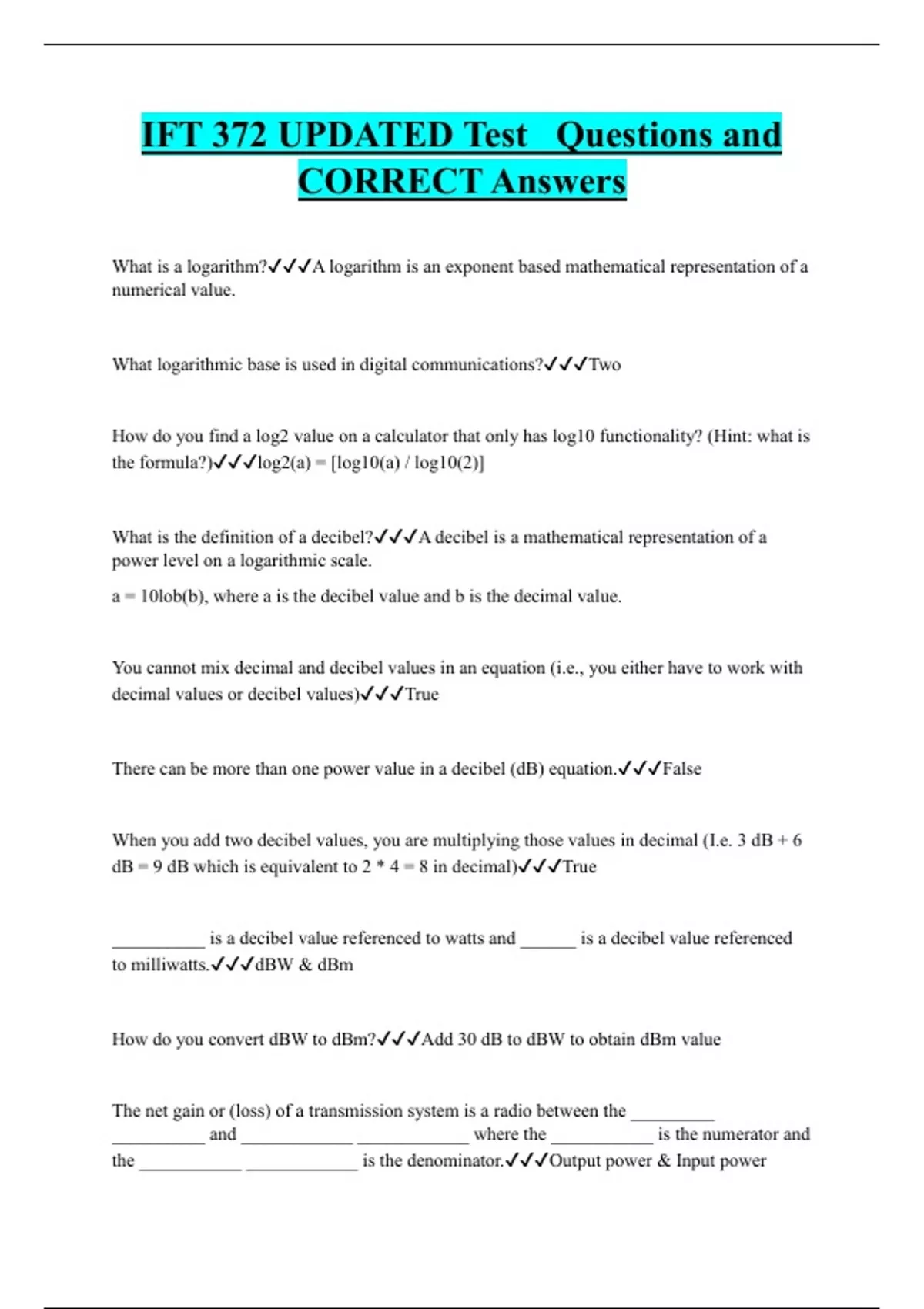 IFT 372 UPDATED Test Questions and CORRECT Answers