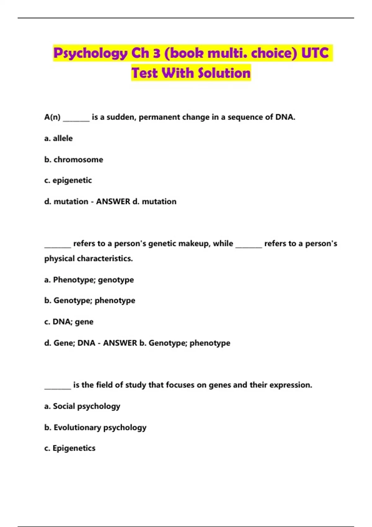 Psychology Ch 3 (book multi. choice) UTC Test With Solution...