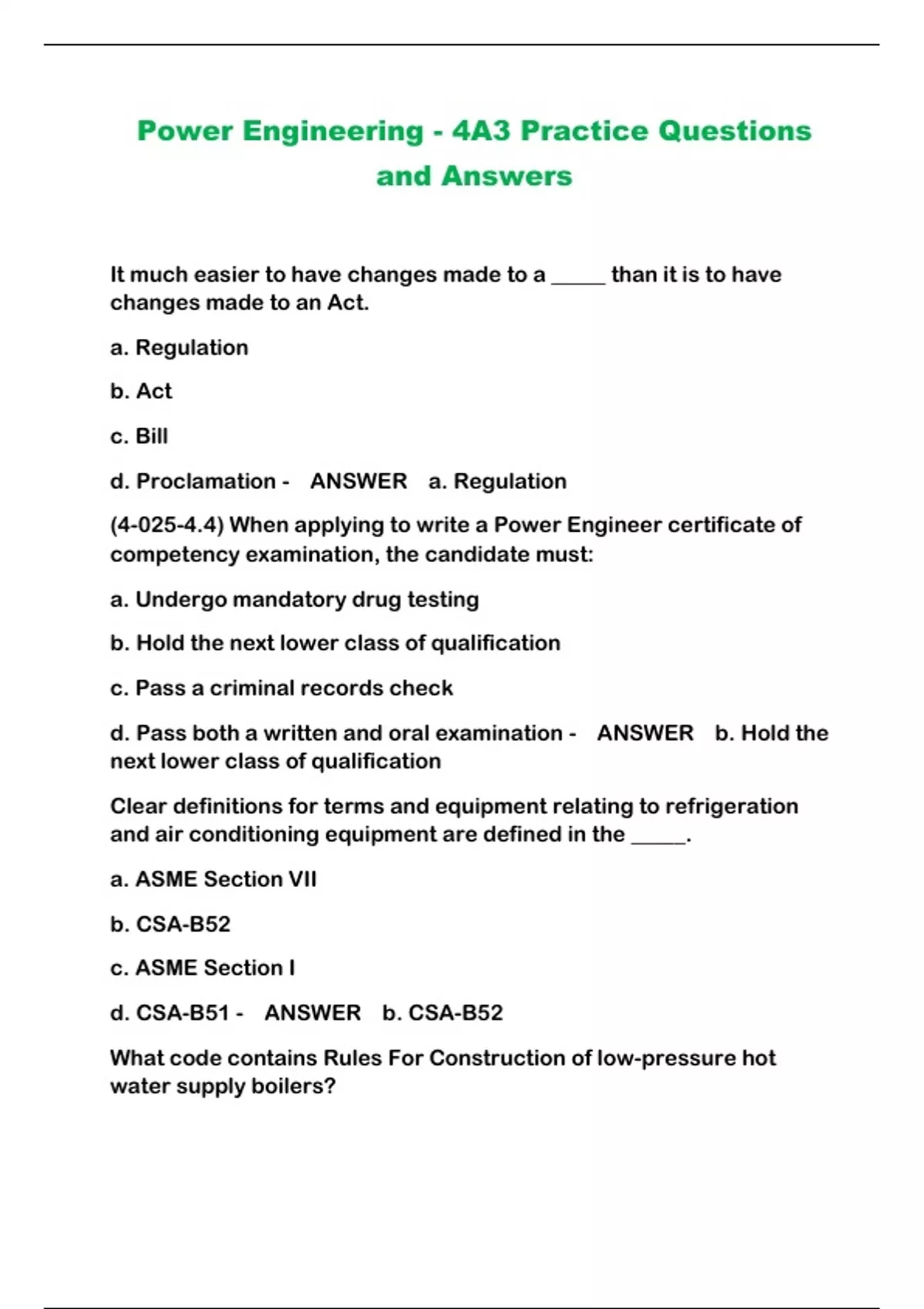 Power Engineering - 4A3 Practice Questions and Answers ...