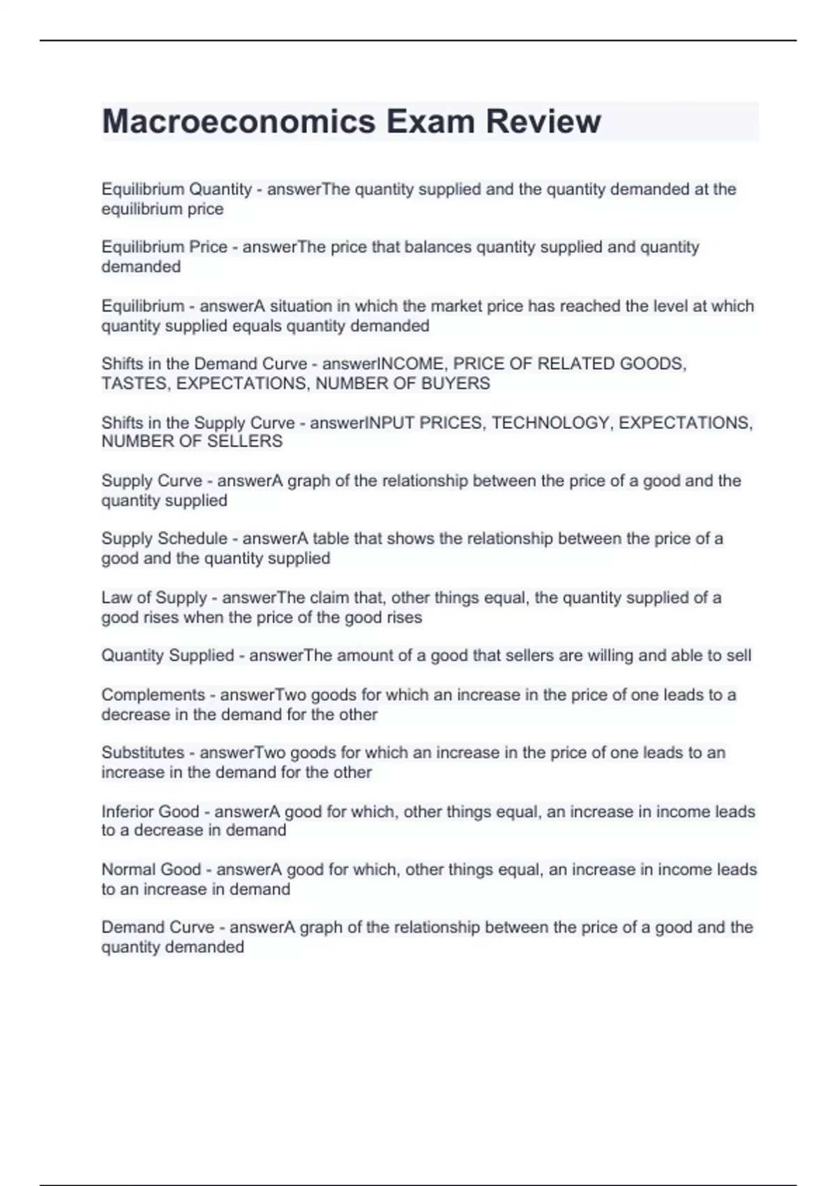 Macroeconomics Exam Review.Questions with strong answers 2024