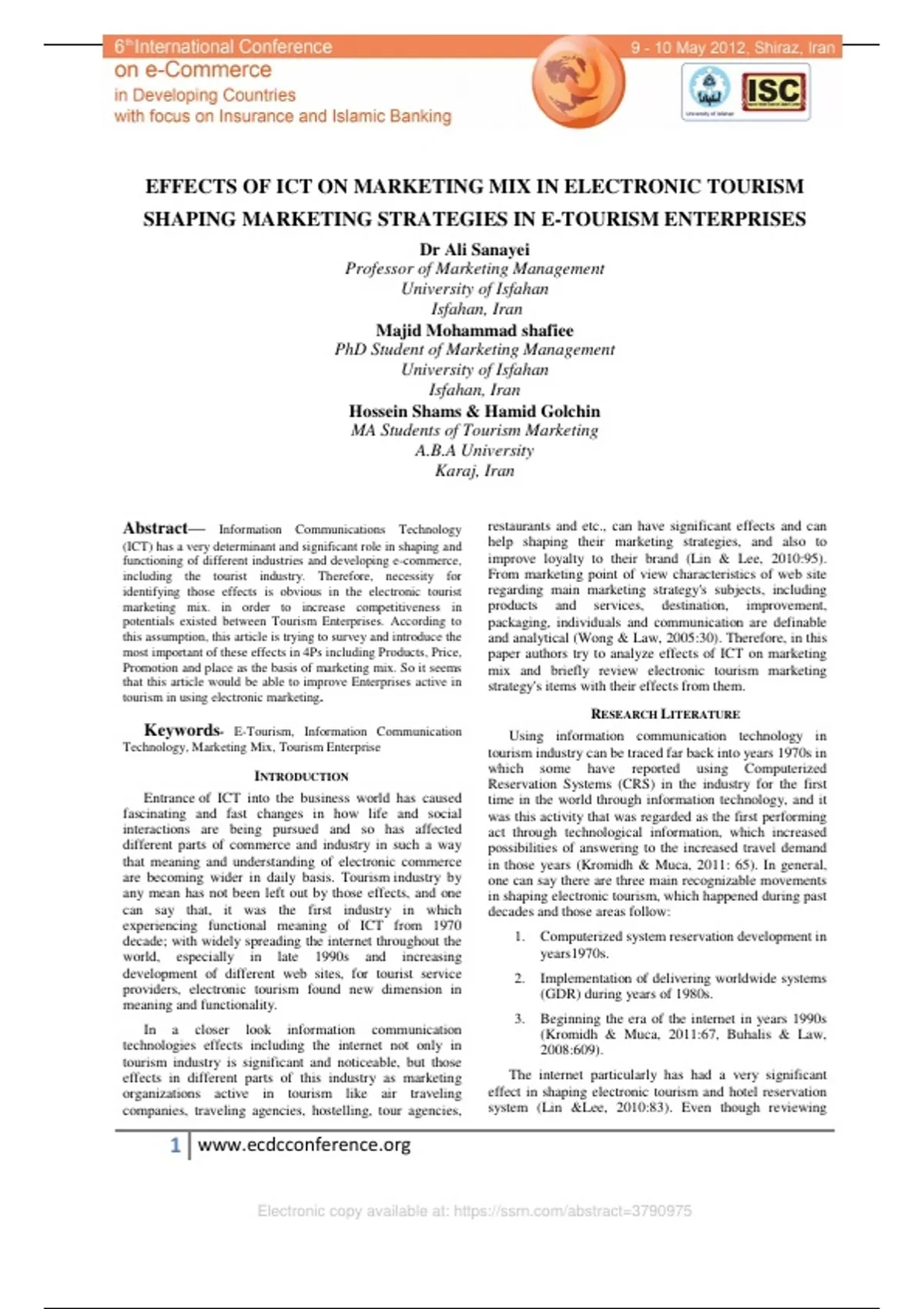 EFFECTS OF ICT ON MARKETING MIX IN ELECTRONIC TOURISM