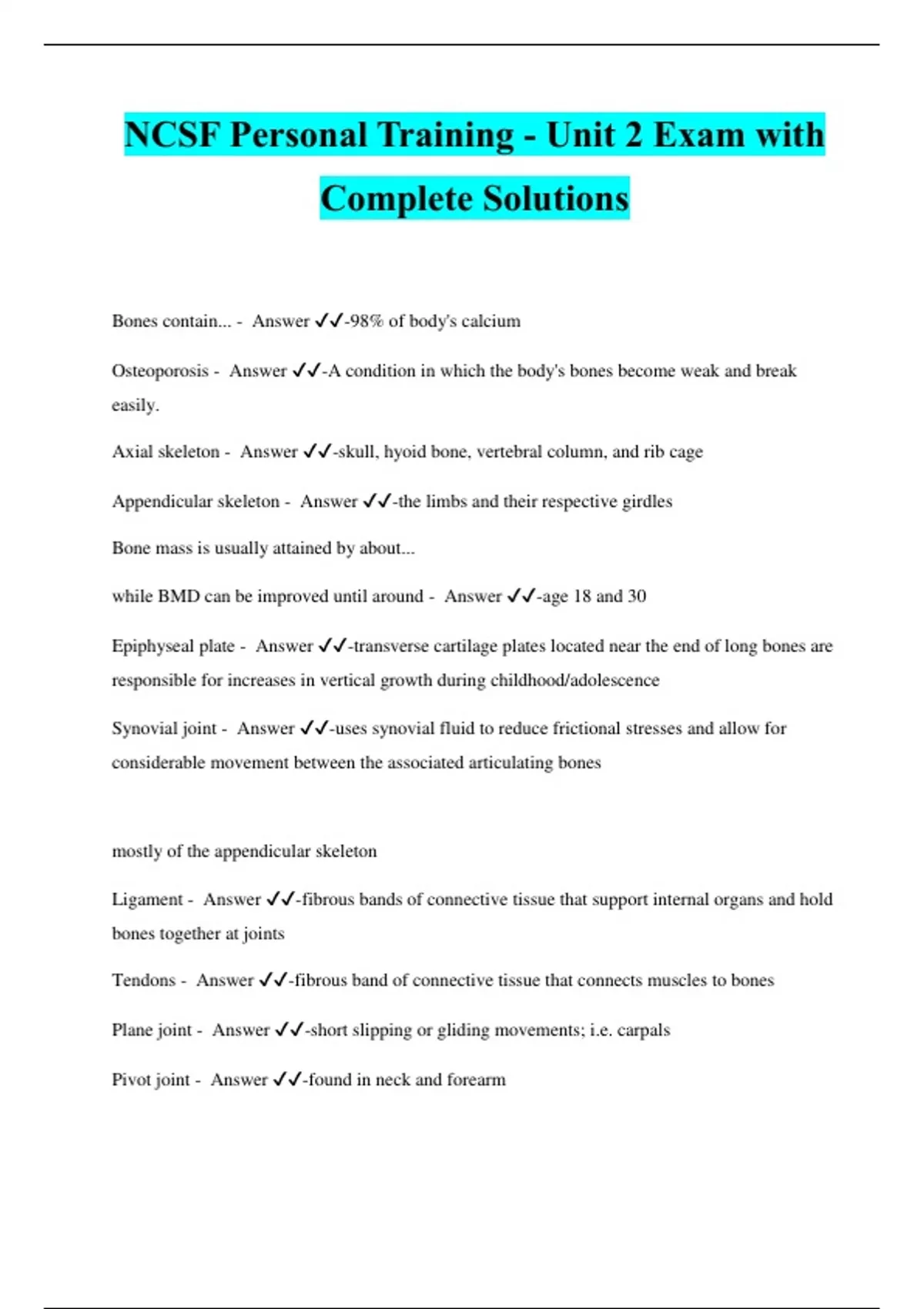 NCSF Personal Training - Unit 2 Exam with Complete Solutions