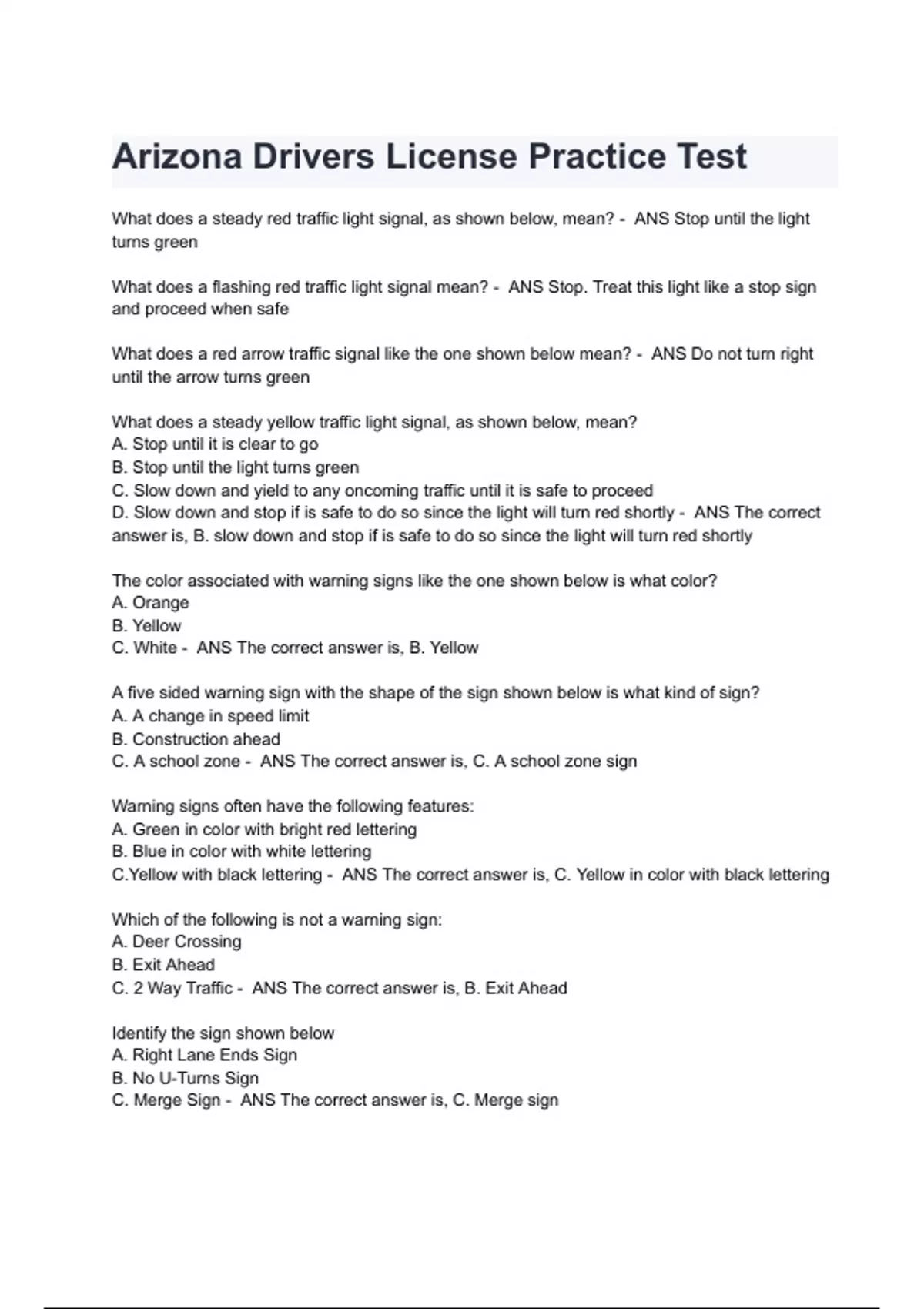 Arizona Drivers License Practice Test Questions and Answers 2024( A+ GRADED 100% VERIFIED).