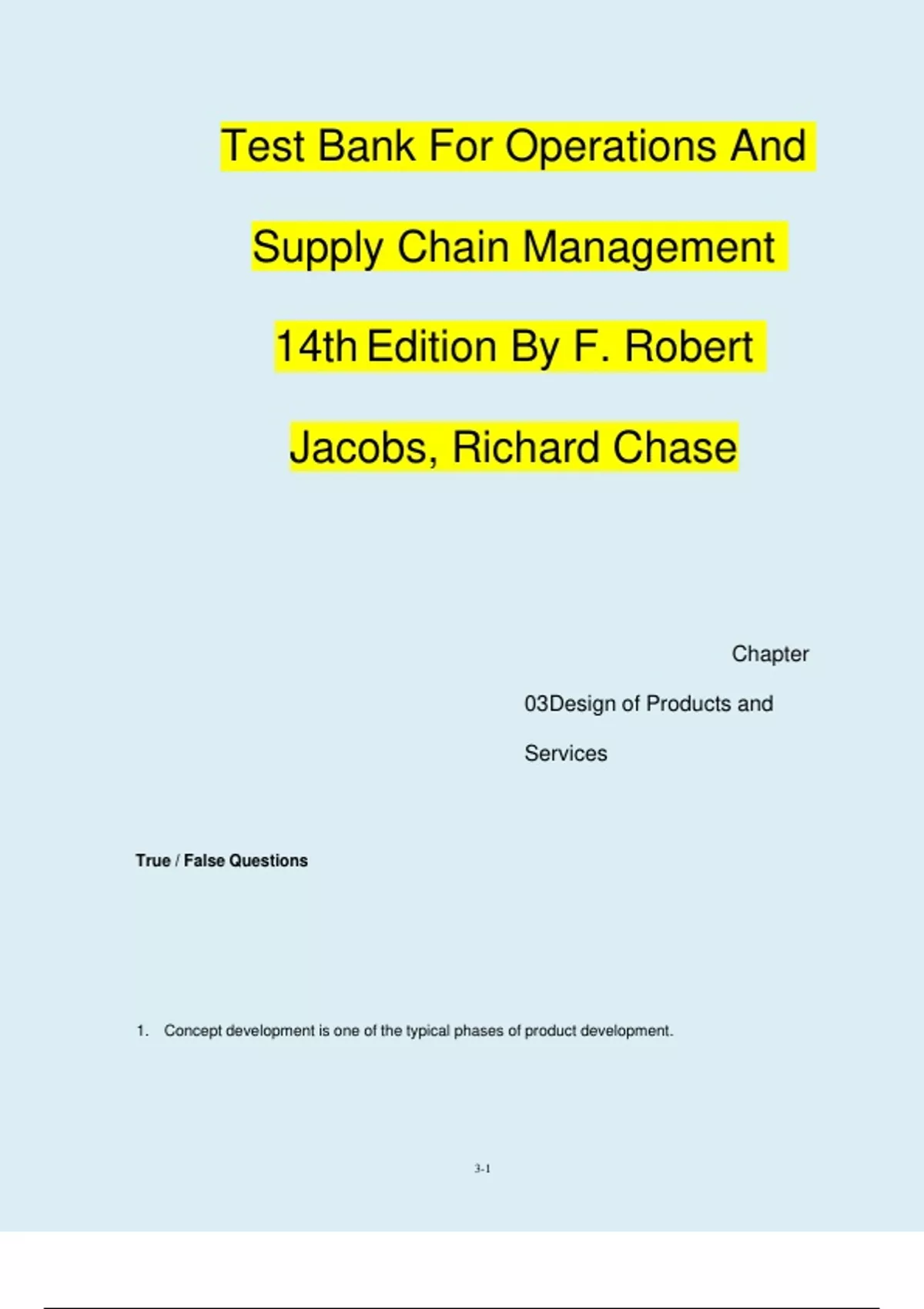 Test Bank For Operations And Supply Chain Management 14thEdition By F. Robert Jacobs, Richard ChaseTest Bank For Operations And Supply Chain Management 14thEdition By F. Robert Jacobs, Richard Chase
