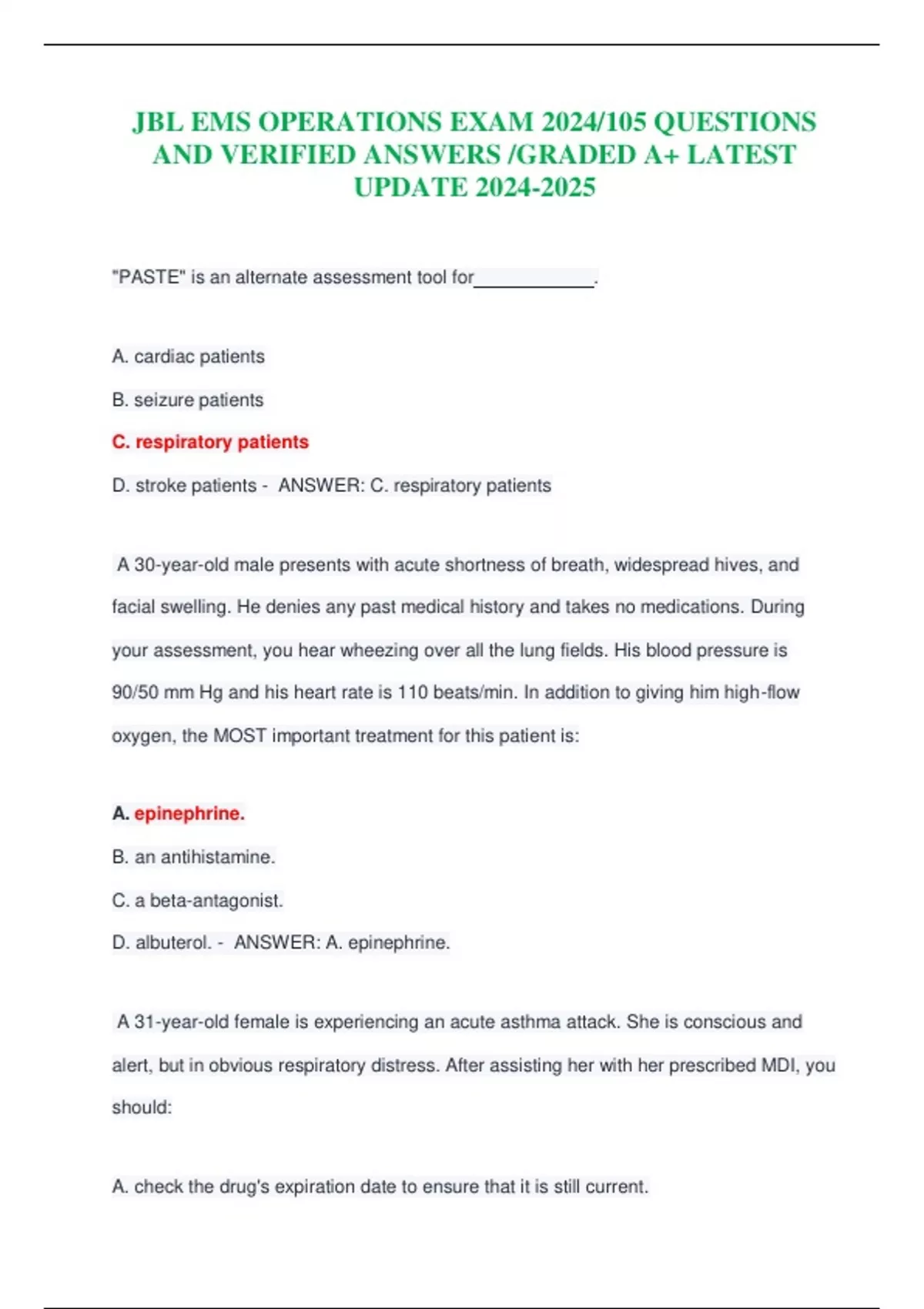 JBL EMS OPERATIONS EXAM 2024/105 QUESTIONS AND VERIFIED ANSWERS /GRADED A+ LATEST UPDATE