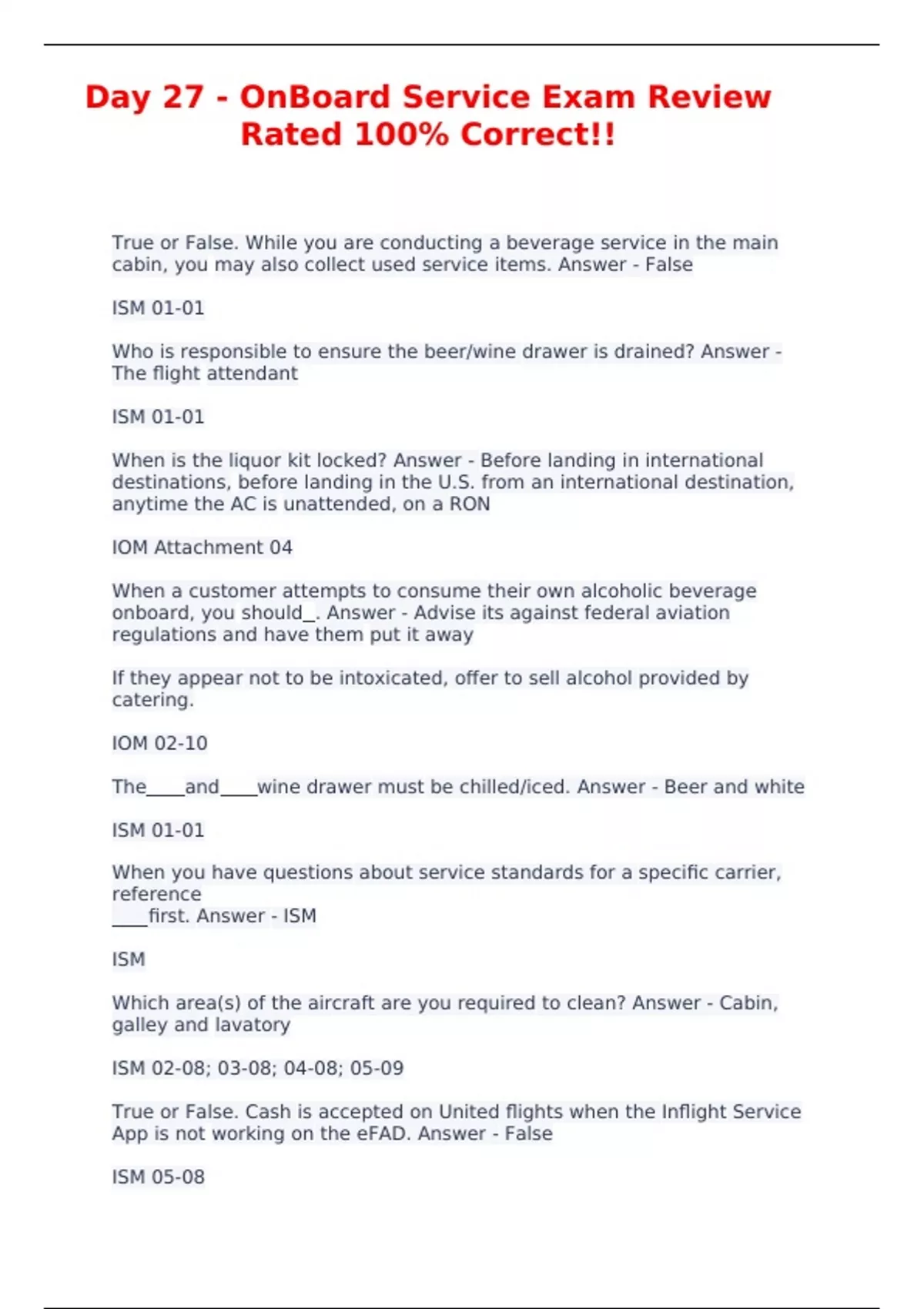Day 27 - OnBoard Service Exam Review Rated 100% Correct!!