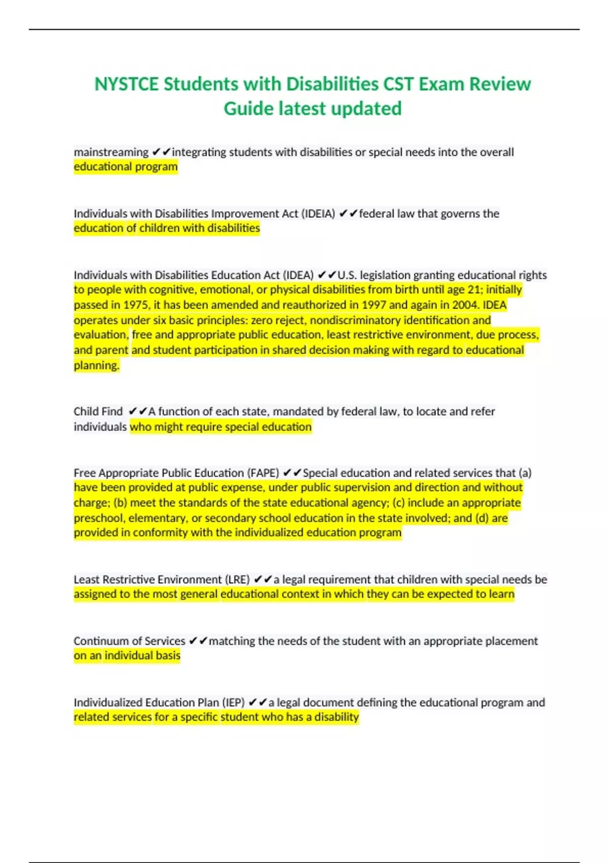 NYSTCE Students with Disabilities CST Exam Review Guide latest updated