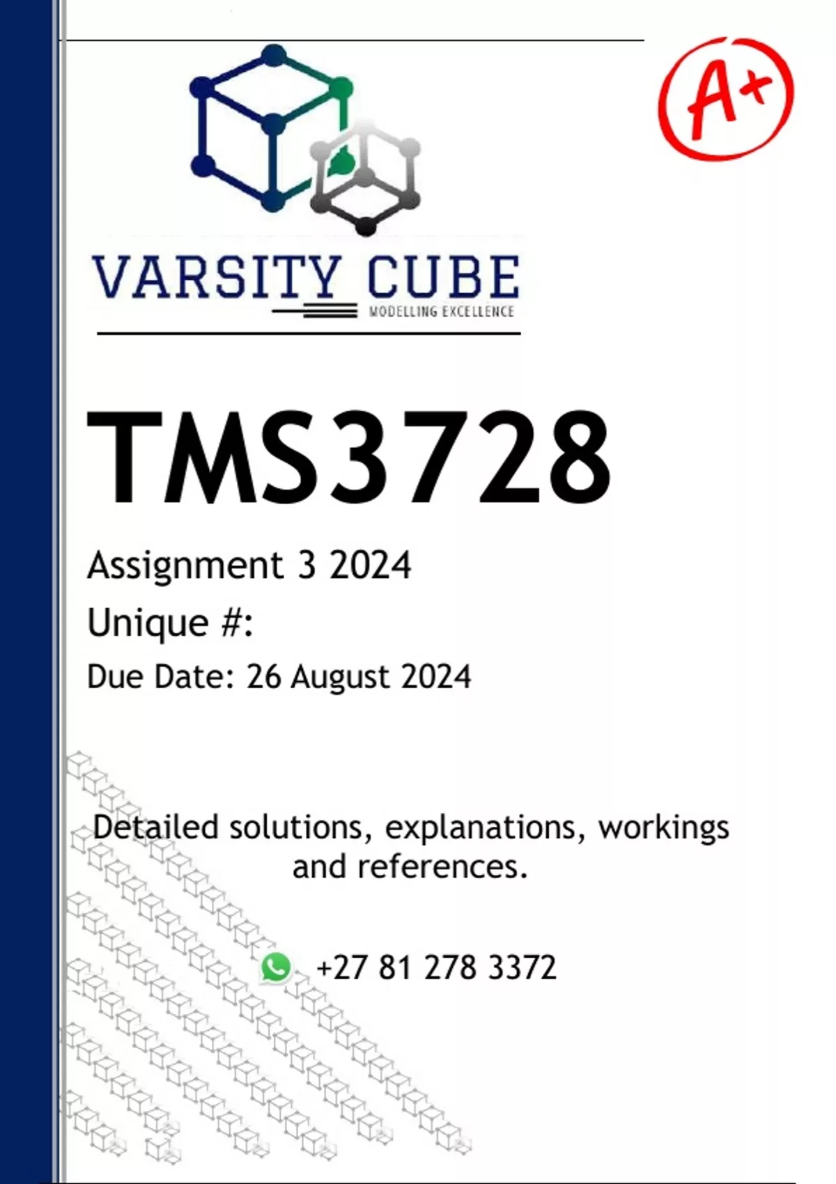 TMS3728 Assignment 3 (DETAILED ANSWERS) 2024 - DISTINCTION GUARANTEED - DISTINCTION GUARANTEED - DISTINCTION GUARANTEED Answers, guidelines, workings and references ...... 1. Design a lesson plan for a LEARNER-CENTERED lesson for Grade 8 learners in Economics and Management Sciences on the lesson topic: Entrepreneurship: Factors of production as a topic prescribed in the CAPS document. Take careful note of the following context of your hypothetical Grade 8 class: there are 32 learners in the class. The school has access to resources such as a smartboard and projector for the teacher, access to the internet, and the learners each have a textbook and workbook. (30) HINT: LESSON PLAN ASSESSMENT RUBRIC: Use this lesson plan assessment rubric below as a guide to compile the lesson. Do not simply redraw this rubric or complete the one below. It only serves as a guide to help you to plan your lesson. A lesson plan presents best in a table format. Give as much detail about how you are planning to present your lesson as possible. Ensure that the lesson is differentiated and LEARNER-CENTERED and not teacher-centred. Components of lesson Detailed criteria / information Marks 1. Localising details Subject Grade Time allocation Number of learners 2 marks 2. Learning intentions Provide knowledge, skills and values 2 marks 3. Curriculum topic Topic from the CAPS document 2 marks 4. Lesson theme (curriculum sub-theme) A curriculum sub-theme or lesson content theme 2 marks 5. Method(s), teaching support aids and learning material a) Motivate choice of teaching methods/techniques/strategies at each stage b) Teaching aids described and justified 3 marks 2 marks 6. Place of the lesson in the curriculum a) Indicate where theme fits into curriculum b) Lesson content 2 mark 2 marks TMS3708 ASSIGNMENT 3 7. Lesson differentiation Explain how you would differentiate the lesson at the different phases (introduction/body/conclusion) 3 marks 8. Pattern of the lesson a) Existing knowledge b) Introduction of lesson theme c) Explanation of new content 2 marks 2 marks 3 marks 9. Assessment Provide types of assessment activities (including homework) 3 marks TOTAL MARKS: 30 2. Barriers to learning are any factor that may impact on a learner’s ability to learn optimally in a classroom. With South African classrooms becoming more heterogenous in terms of learner needs, abilities, backgrounds, and learning preferences, teachers must plan for the diverse needs of their learners and support learners who may face learning barriers in the EMS classroom. Conduct your own research (internet search, observation in the classroom, informal interviews with teachers) to answer the questions below. All responses must be within the context of a South African classroom. 2.1 Describe any barrier to learning that is prevalent in South African classrooms. (2) 2.2 Using examples, discuss how you will plan to support leaners in your EMS classroom to overcome this barrier. (8) 3. Defend (explain and justify using examples) the importance of planning for learners’ prior knowledge before teaching new content in a lesson. (5) 4. Why is it important for a teacher to know the learners’ interests, home context, socio-economic context etc., when planning a lesson? Justify your response using examples from the EMS curriculum. (5) . 5. Suppose you are a Grade 9 EMS teacher in an under resourced school in a low-income community in South Africa. There are 48 learners in your classroom. The school does not have access to resources such as laptops or the internet. The learners do not all have access to smart devices or data at school or at TMS3708 ASSIGNMENT 3 home. The school provides learners with textbooks and workbooks but cannot fund a variety of resources for your classroom. You have chosen to use a teacher-centred teaching and learning strategy to teach the topic “Financial Literacy Cash Receipts Journal and Cash Payments Journal”. Choose and discuss any teacher-centred teaching and learning method that would be the most appropriate to teach this lesson and defend the use of this method in the context of this classroom. Use examples related to CAPS to illustrate your PCK.
