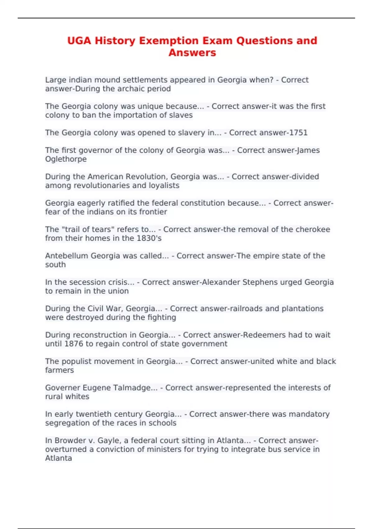 UGA History Exemption Exam Questions and Answers Large indian mound settlements appeared in Georgia when? - Correct answer-During the archaic period