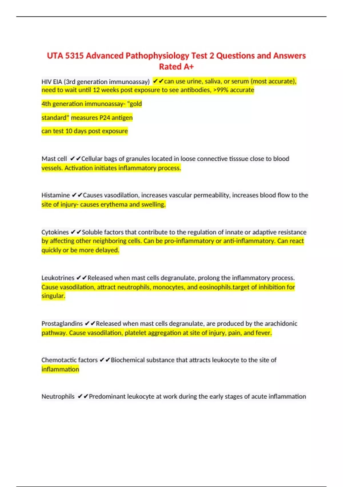 UTA 5315 Advanced Pathophysiology Test 2 Questions and Answers Rated A+