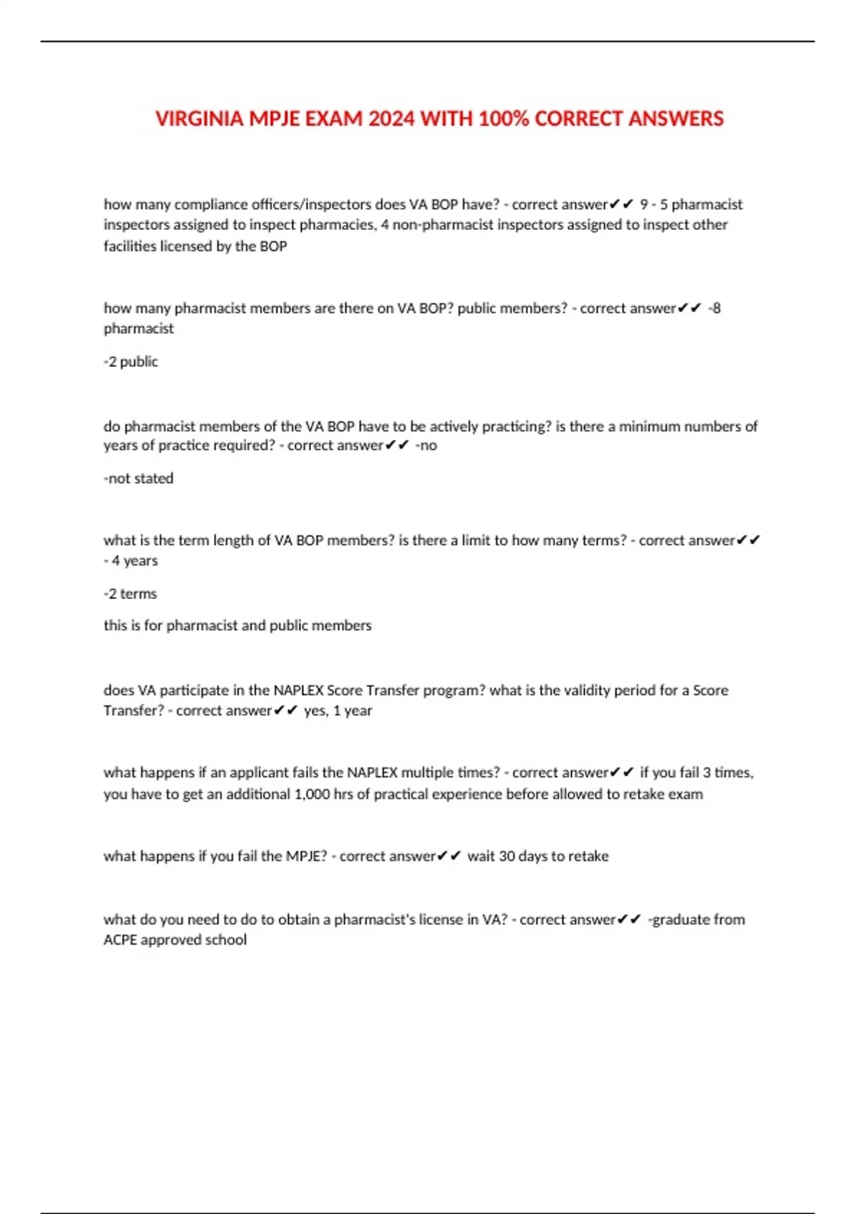 VIRGINIA MPJE EXAM 2024 WITH 100% CORRECT ANSWERS