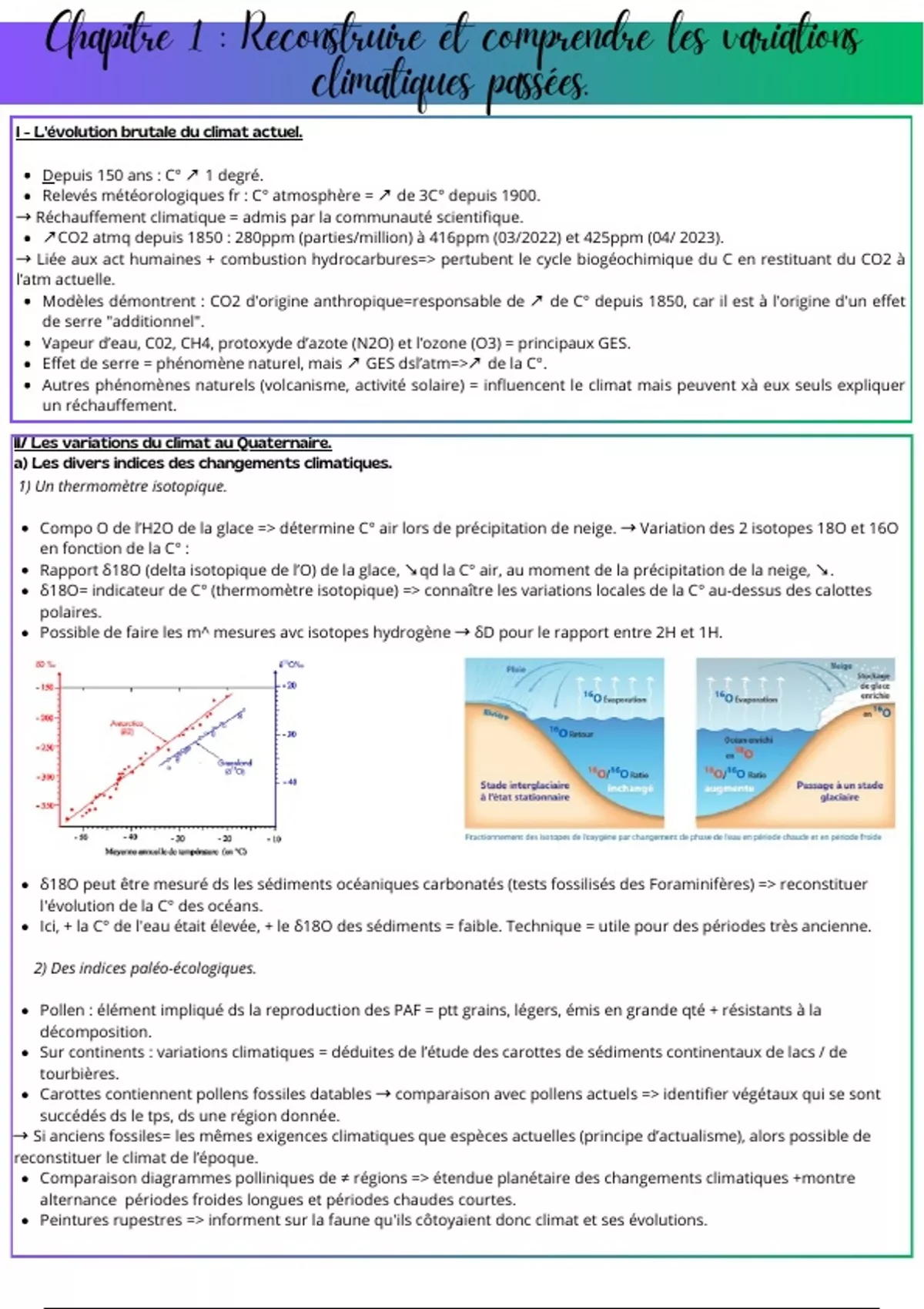 δ18O= indicateur de C° (thermomètre isotopique) => connaître les variations locales de la C° au-dessus des calottes