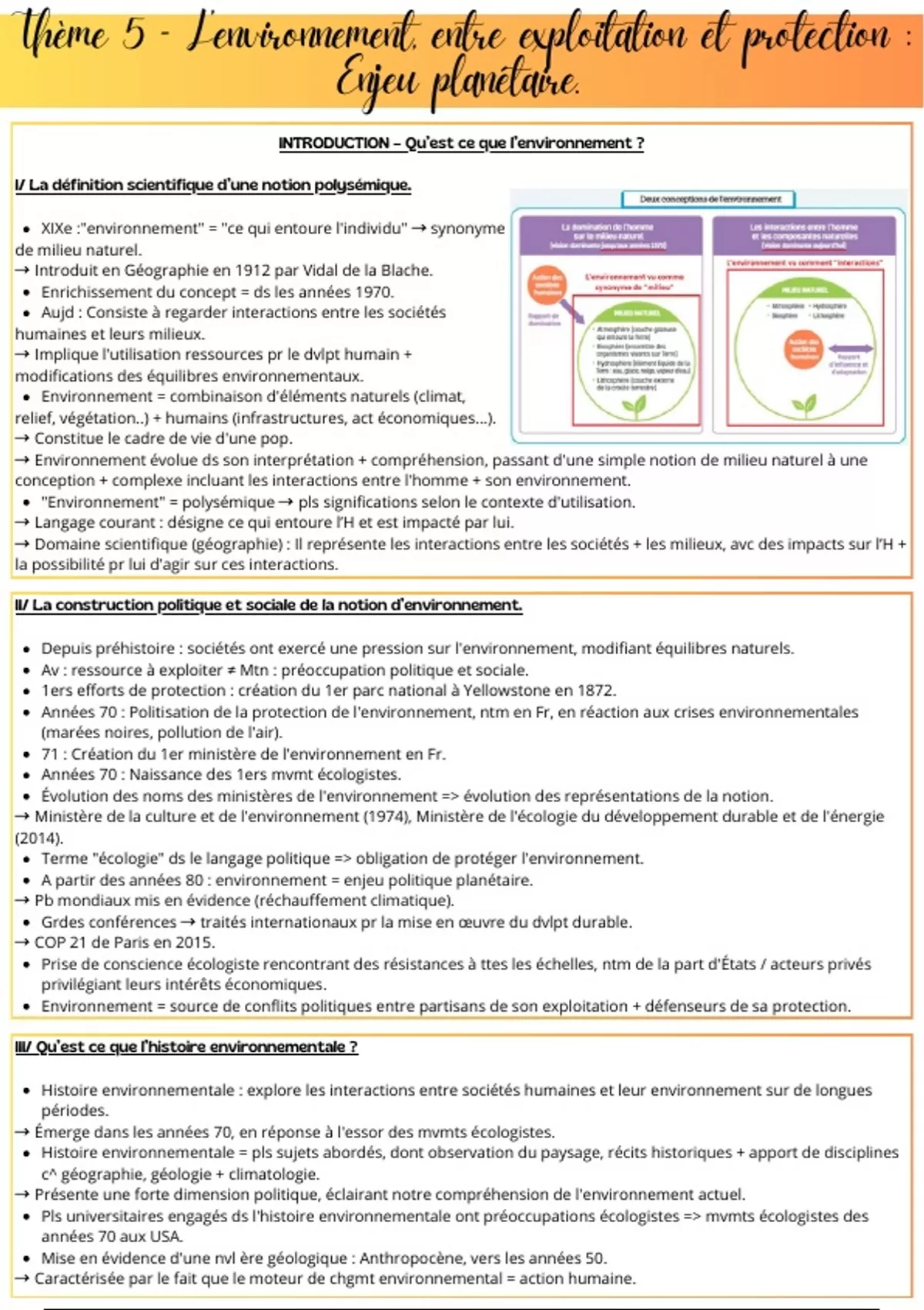 → Environnement évolue ds son interprétation + compréhension, passant d'une simple notion de milieu naturel à une