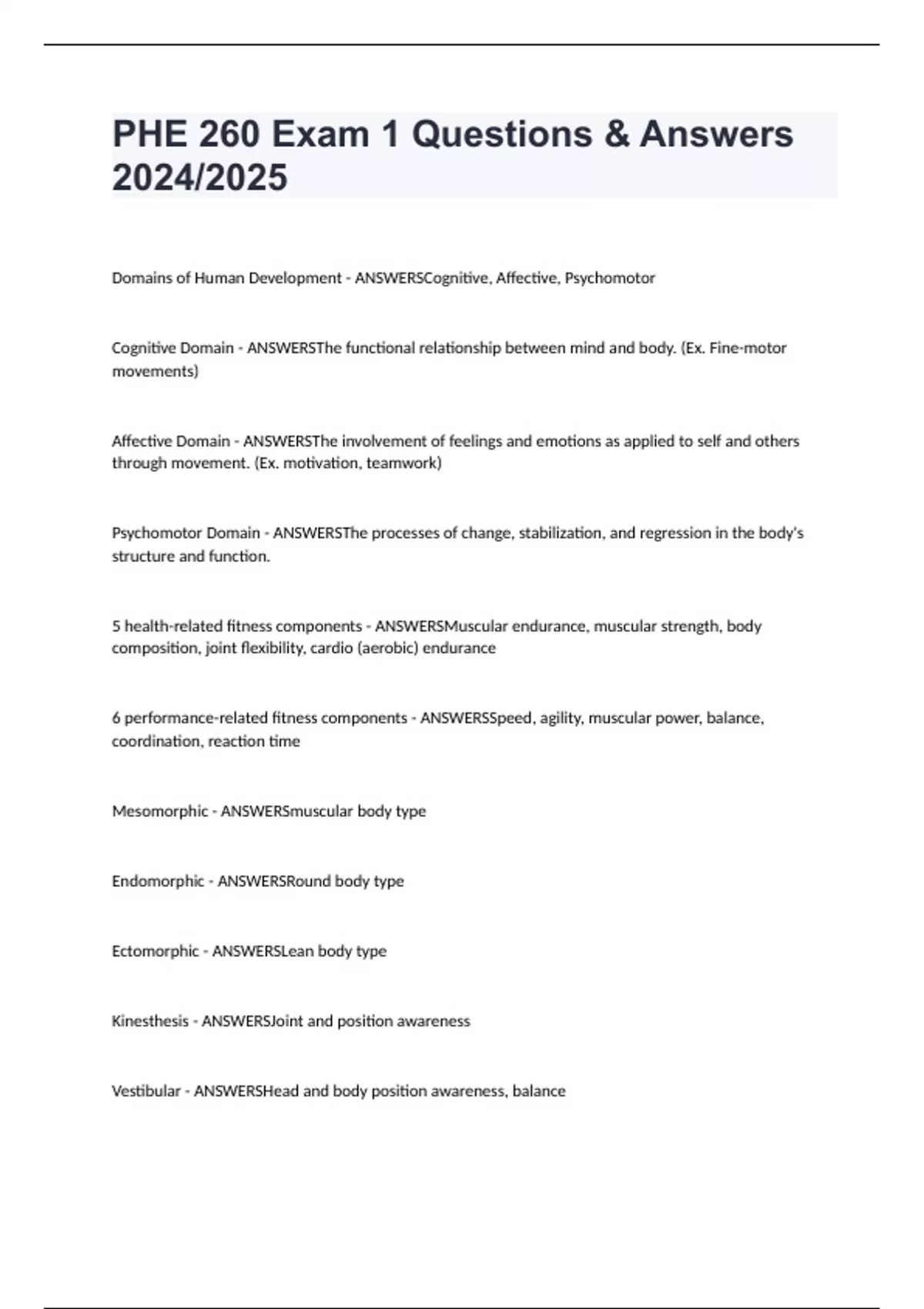 PHE 260 Exam 1 Questions & Answers 2024/2025