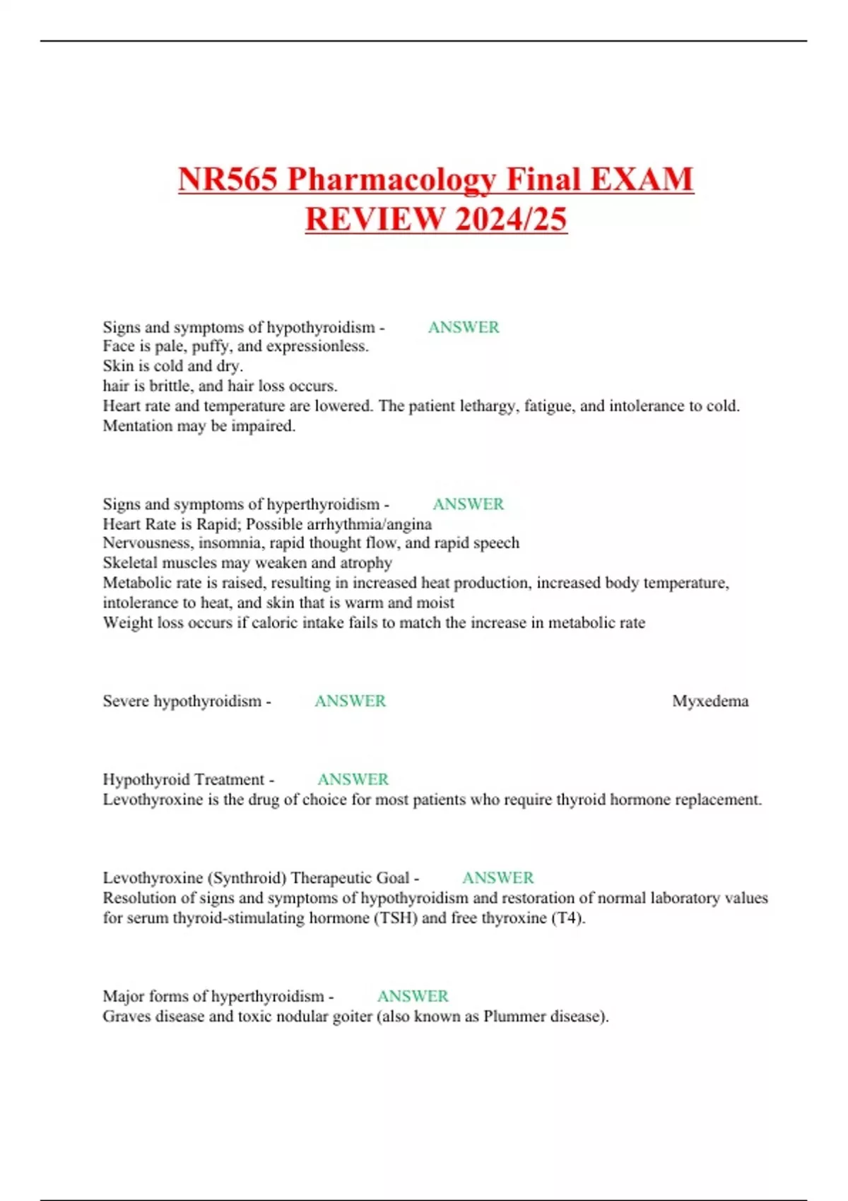 NR565 Pharmacology Final EXAM REVIEW 2024/25