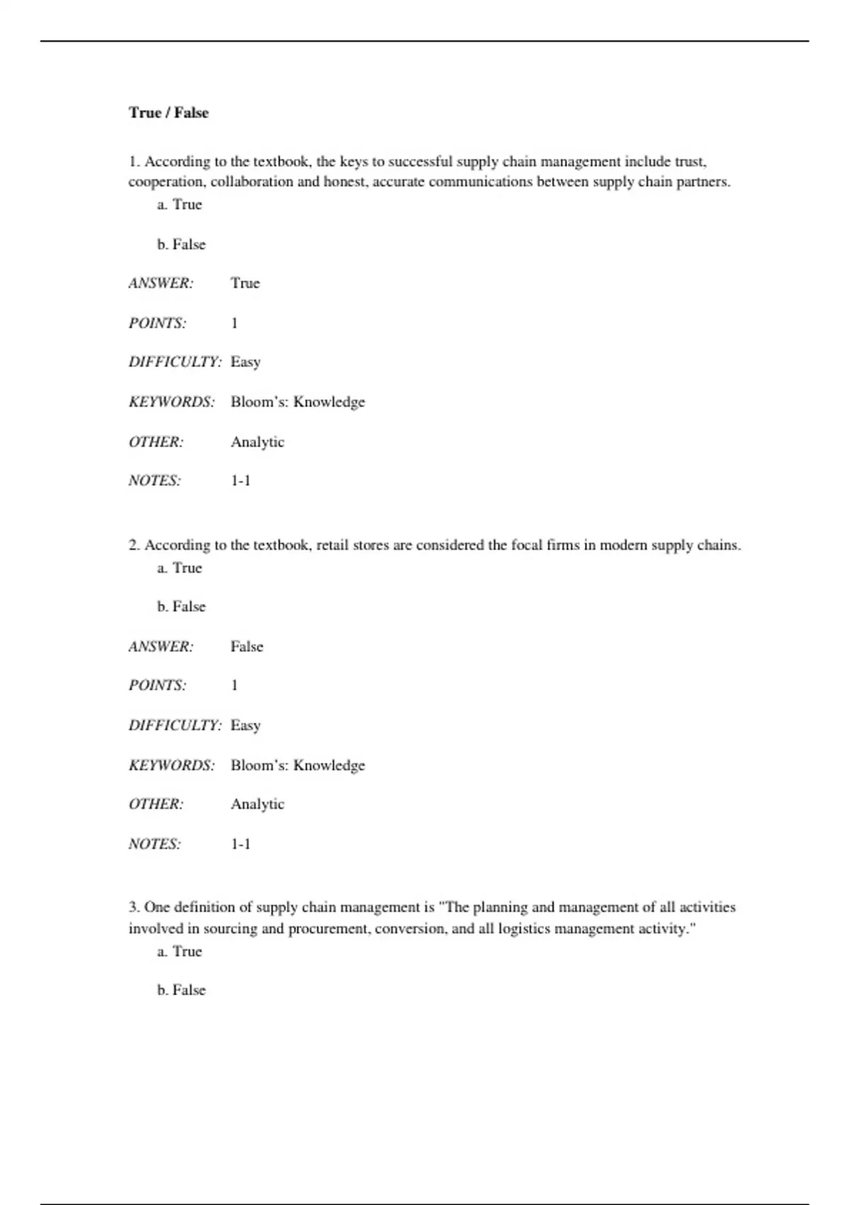 1. According to the textbook, the keys to successful supply chain management include trust,