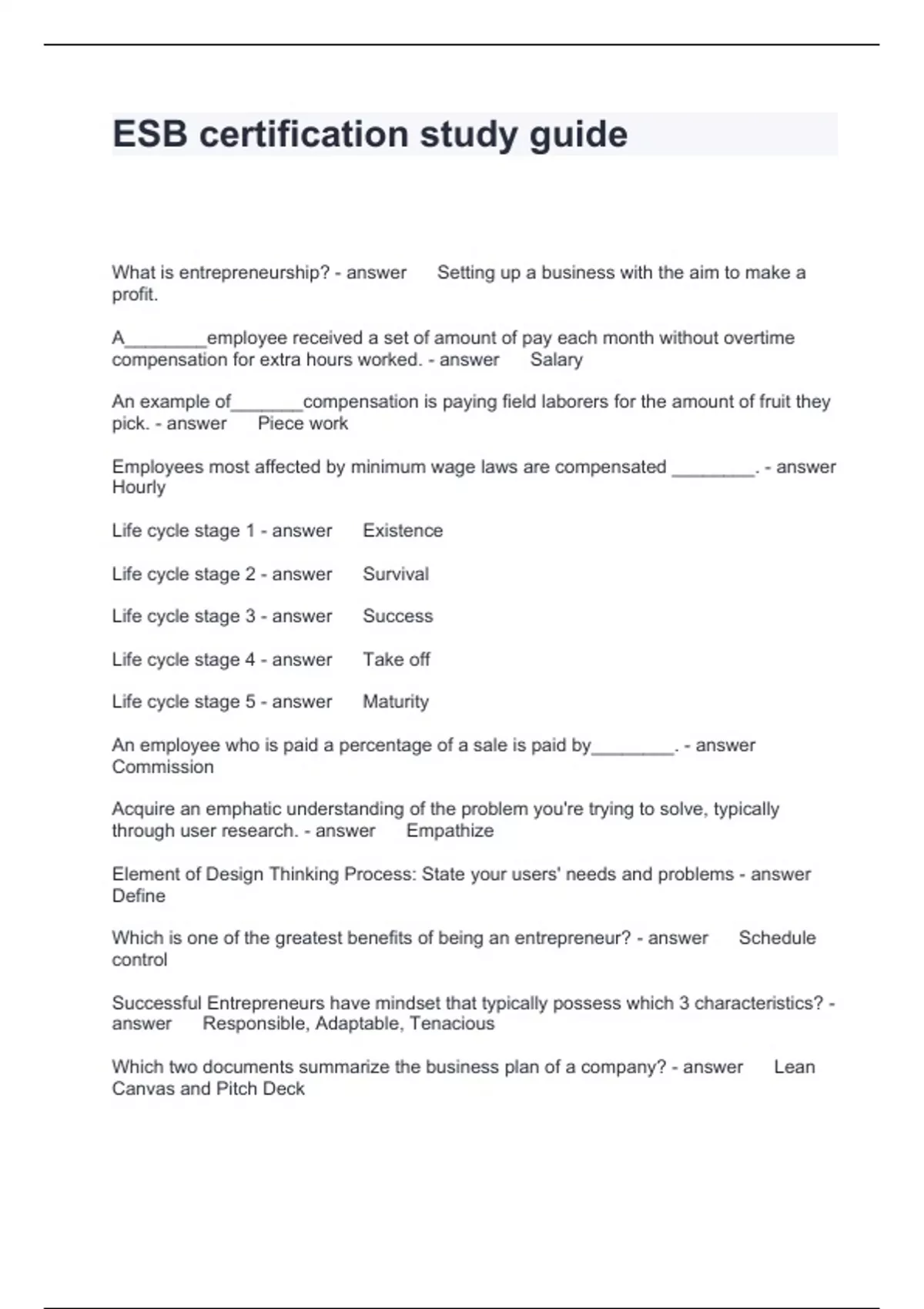 ESB certification study guide Questions and Answers Graded A+
