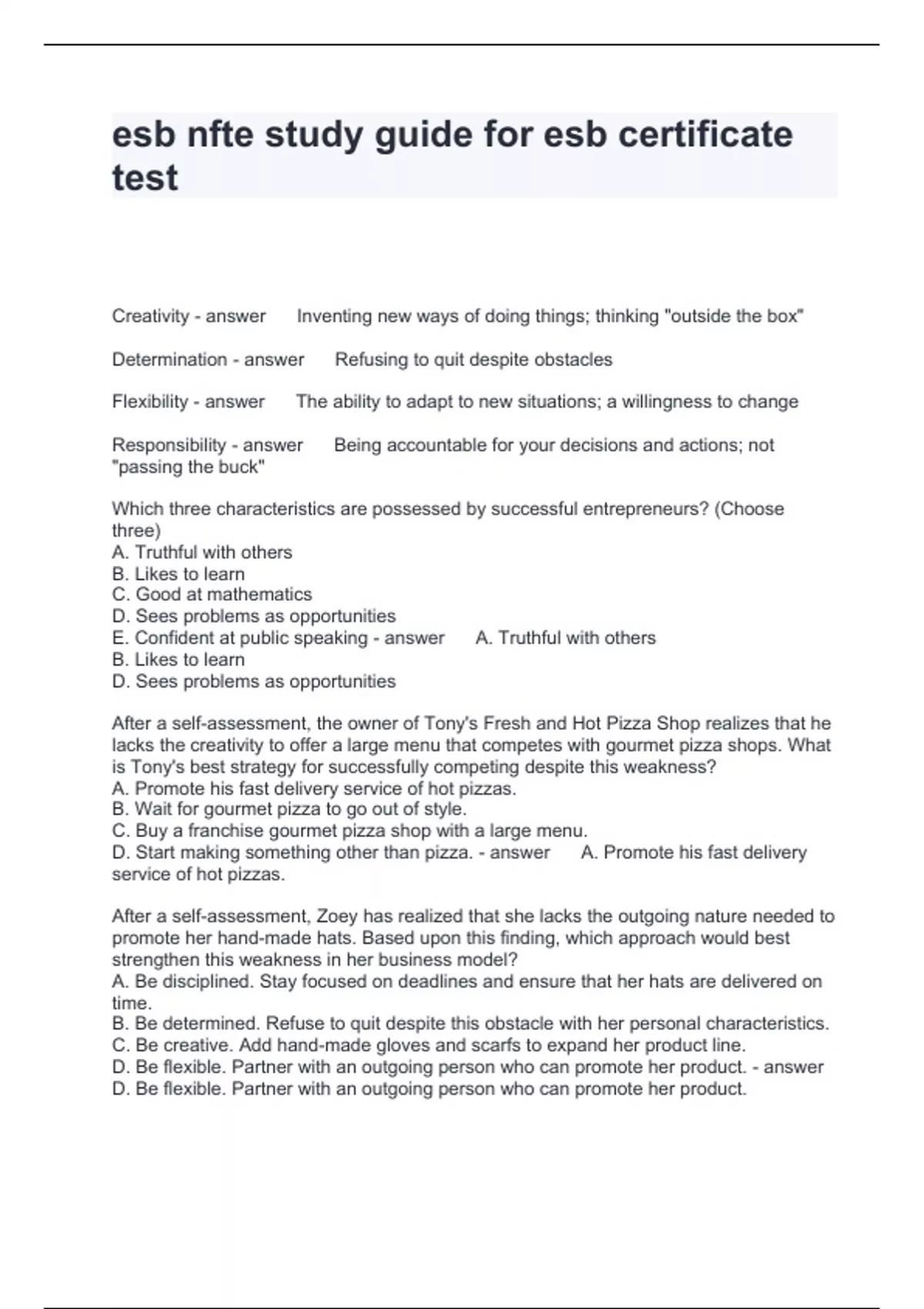 esb nfte study guide for esb certificate test Questions verified
