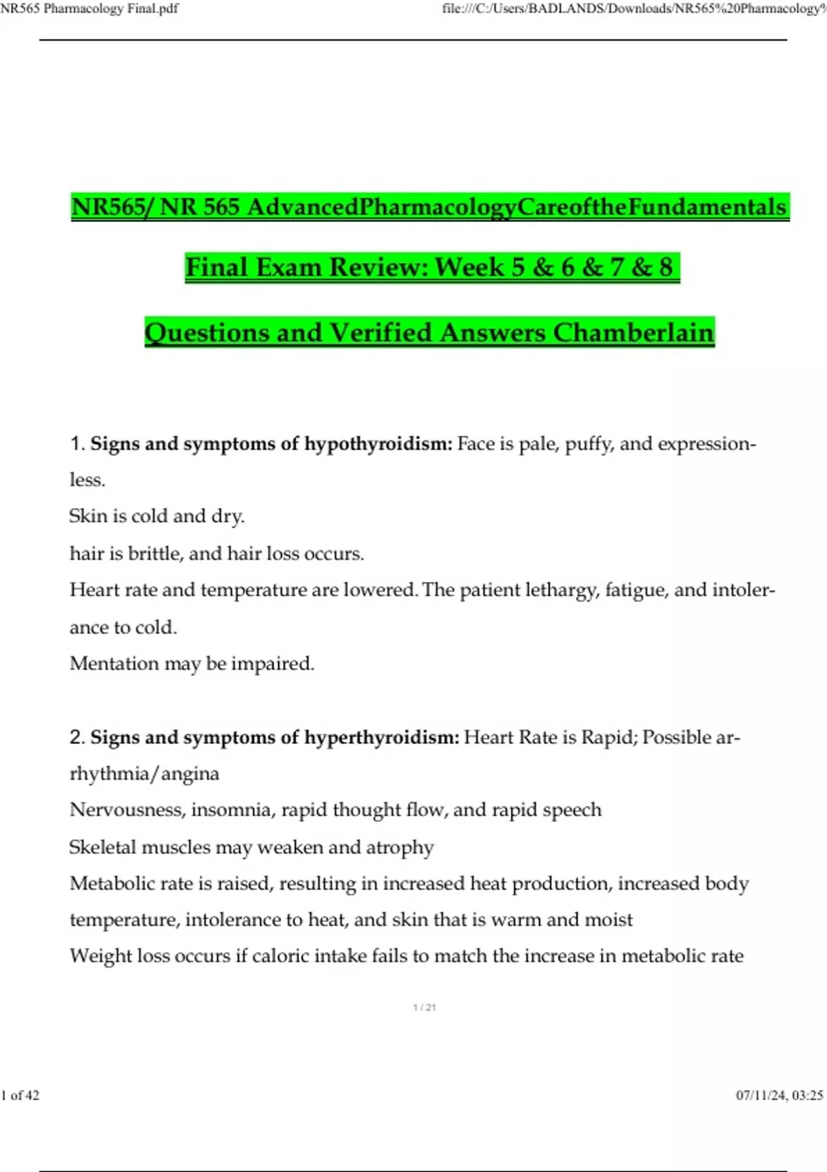 NR 565 / NR565 Advanced Pharmacology Exam Review | Weeks 5-8 Covered| Complete Guide with Questions and Verified Answers (2023/ 2024)