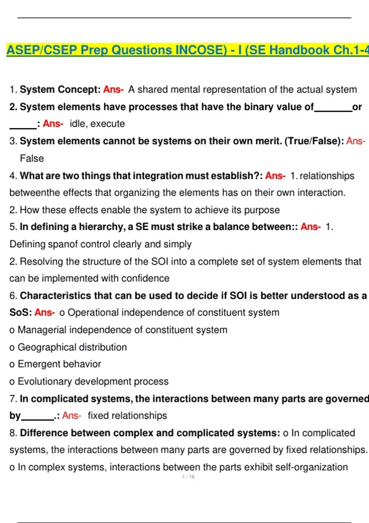 ASEP/CSEP Prep Questions INCOSE) - I (SE Handbook Ch.1-4)