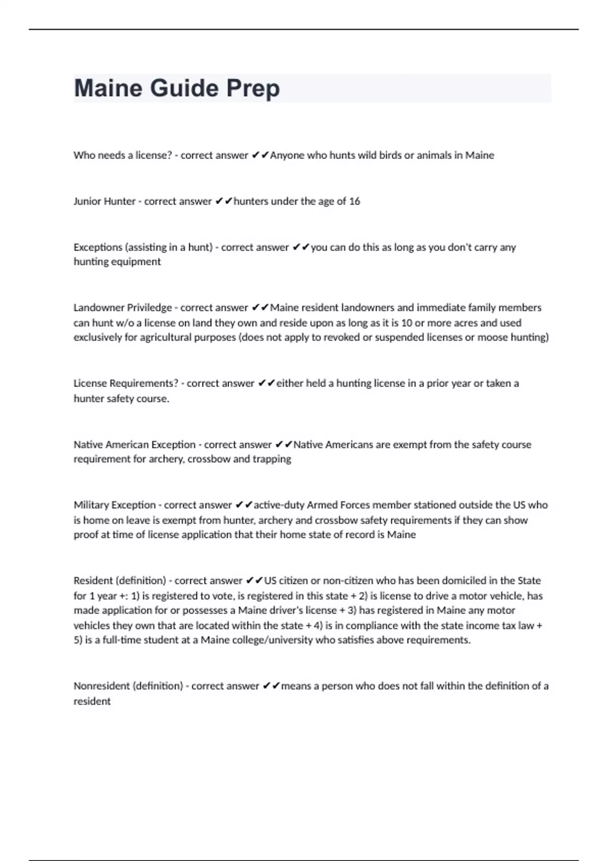 Maine Guide Prep