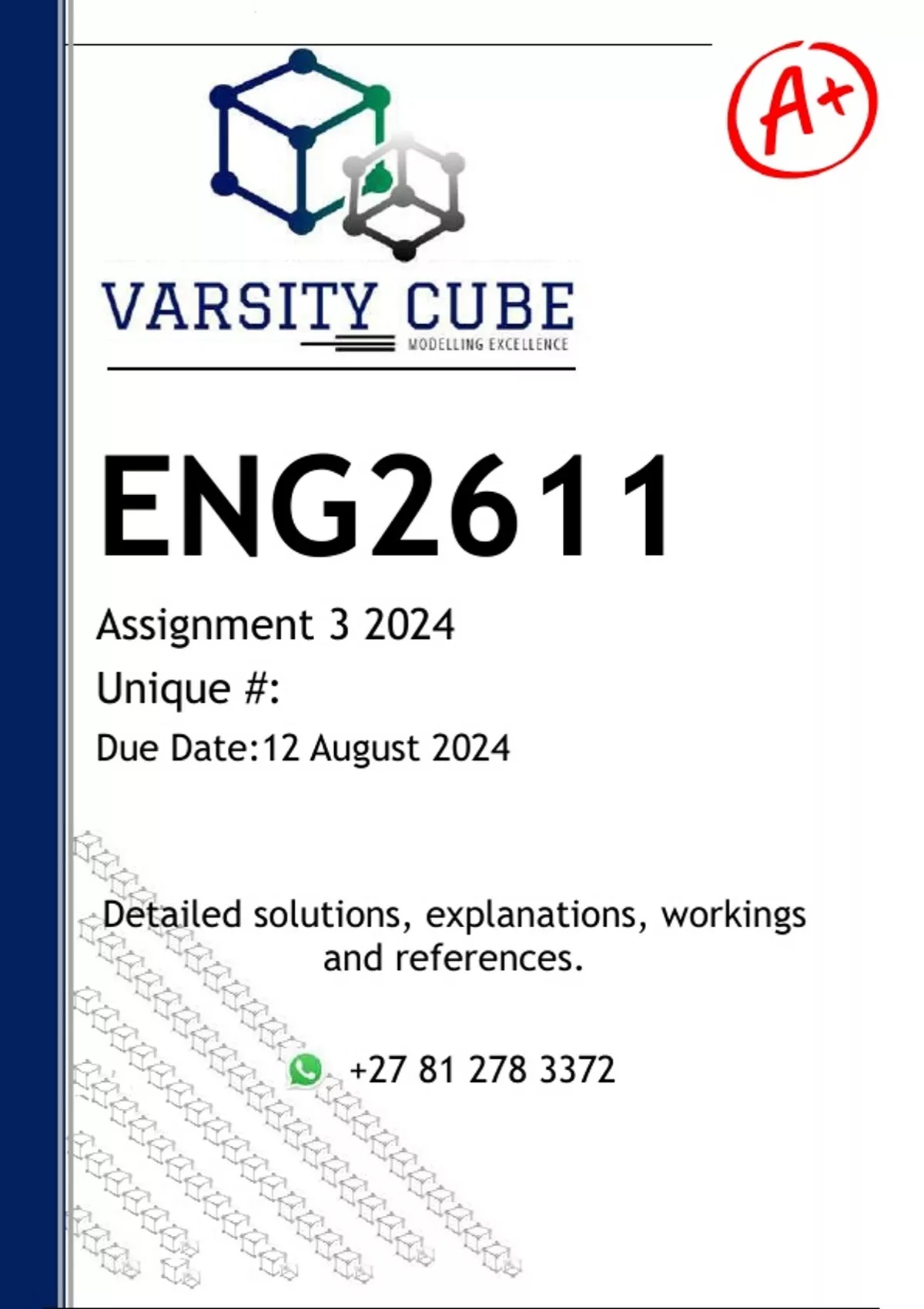 ENG2611 Assignment 3 (DETAILED ANSWERS) 2024 - DISTINCTION GUARANTEED - DISTINCTION GUARANTEED - DISTINCTION GUARANTEED Answers, guidelines, workings and references ... This assignment is an essay. You are required to first read the instructions and the sources that you have been referred to thoroughly. Also read the accompanying rubric before you attempt writing the essay. The rubric will help you understand how marks are going to be allocated when your essay is assessed. Your essay should not be more than 800 words long. SOURCES TO REFER TO SOURCE 1 Picture sourced from Vukuzenzele: A GCIS production SOURCE 2 - JOURNAL ARTICLES 1. Omodan BI, and Ige, OA. 2021. Managing diversity in schools: The place of democratic education and ubuntuism in South Africa. Journal of Transdisciplinary Research in Southern Africa. 7(1), a854. 2. Steenkamp, U. 2021. Cultural Diversity and Its Influence on Role Players in a Full-Service School in Soshanguve: A Wellness Perspective. European Journal of Education. 4(1): 23-39. 3. Venketsamy, R. and Sibanda, S. 2021. Exploring Strategies Teachers Use to Develop Literacy Skills among English First Additional Language Learners in the Foundation Phase. Perspectives in Education. 39 (2): 253-266. 2 ESSAY INSTRUCTIONS Most of the time, English First Additional Language (FAL) learners in the Foundation/Intermediate Phase do not yet have the linguistic competence to fully appreciate texts that are presented in written format. To help them develop literacy skills as well as learn about the importance of cultural diversity, it is recommended that multimodal approaches/texts be used. These approaches and texts will assist learners in developing essential literacy skills and intercultural awareness. Using the above picture, the journal articles listed above, the prescribed book and the ENG2611 official Study Guide as references, write an essay in which you discuss the following: Why can a picture be a good resource to use to teach Foundation/Intermediate phase English FAL learners about cultural diversity? How can you use the picture above to teach/help learners improve literacy skills? What benefits would using the above picture have in helping to improve literacy skills and intercultural awareness in Foundation/Intermediate phase English FAL learners in South African classrooms. A well-presented essay would include the following: a) A demonstration of an understanding of the key concepts of the essay topic, viz; English First Additional Language (FAL) learners, the Foundation/Intermediate Phase, literacy skills, cultural diversity, multimodal texts. b) A demonstration of an understanding of the benefits of using pictures and ways in which pictures can be used to teach about cultural diversity and help learners develop literacy skills. c) A demonstration of an understanding of how the picture provided as a reference can be used to teach literacy skills.